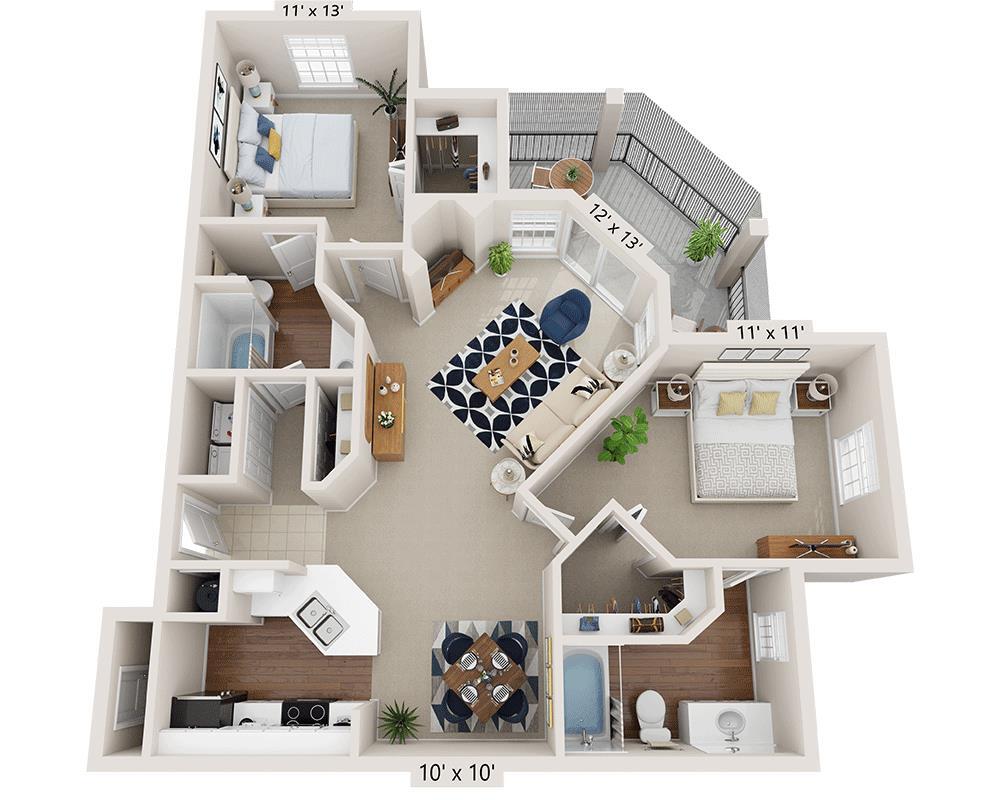 Apartment Model: One Bedroom A1From $1,3151 Bedroom, 1 Bath, 842 sq ftAvailable Now![]()