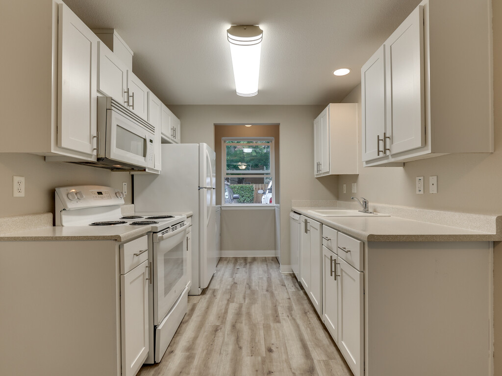 Welcome to your new home - Andresen Park offers well-appointed 850 square foot 2-bedroom, 1-bathroom apartment homes that provide cozy and upgraded features. You’ll walk into your apartment home with welcoming soft toned LVP plank flooring throughout the unit with carpet only in the bedrooms, a galley style kitchen, full-size washer and dryer, energy efficient LED lighting, storage on your private balcony and a select few of our units offer oversized balconies for your outdoor enjoyment. Our friendly, onsite management team coupled with our 24/7 maintenance answering service, community nightly patrol, and an array of parking options provides you with the comfort you’ll need to live your best life at Andresen Park Apartments.