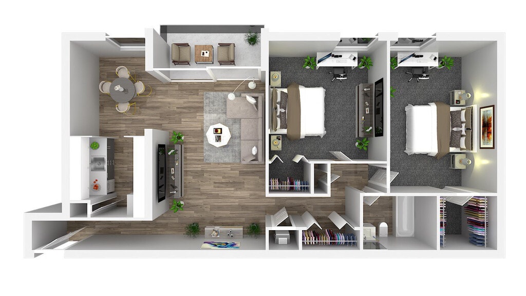 2 Beds, 1 Bath, 1042 sq ftAvailable NowModel Gallery