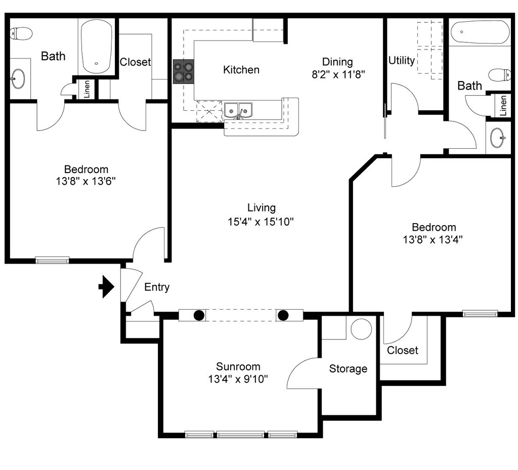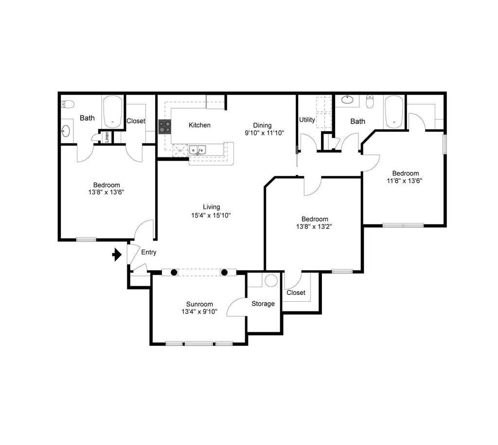 Apartment Model: 2 Bedroom SunroomFrom $1,6662 Bedroom, 2 Bath, 1236 sq ftAvailable November 20, 2025FloorplansPhotos![]()