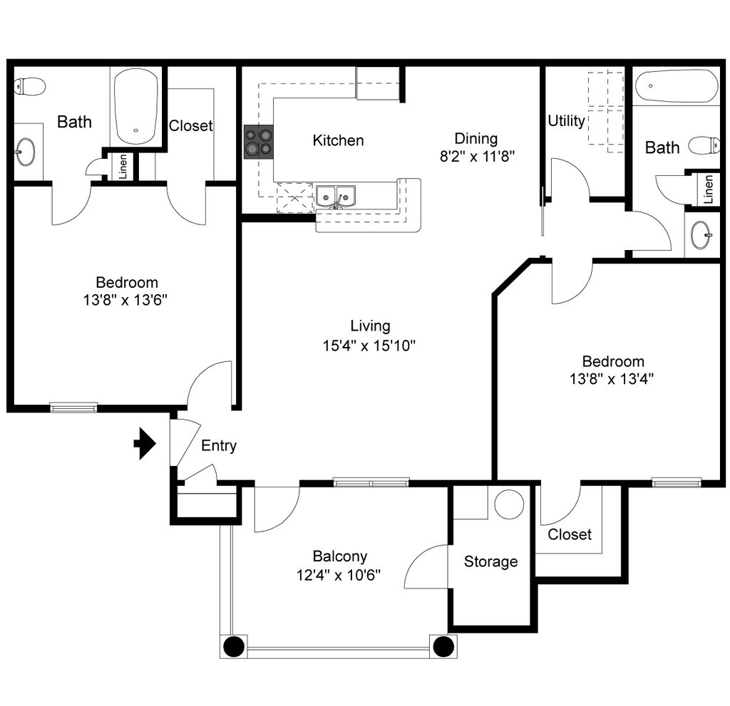 Apartment Model: 2 Bedroom BalconyFrom $1,6922 Bedroom, 2 Bath, 1099 sq ftAvailable November 8, 2025![]()