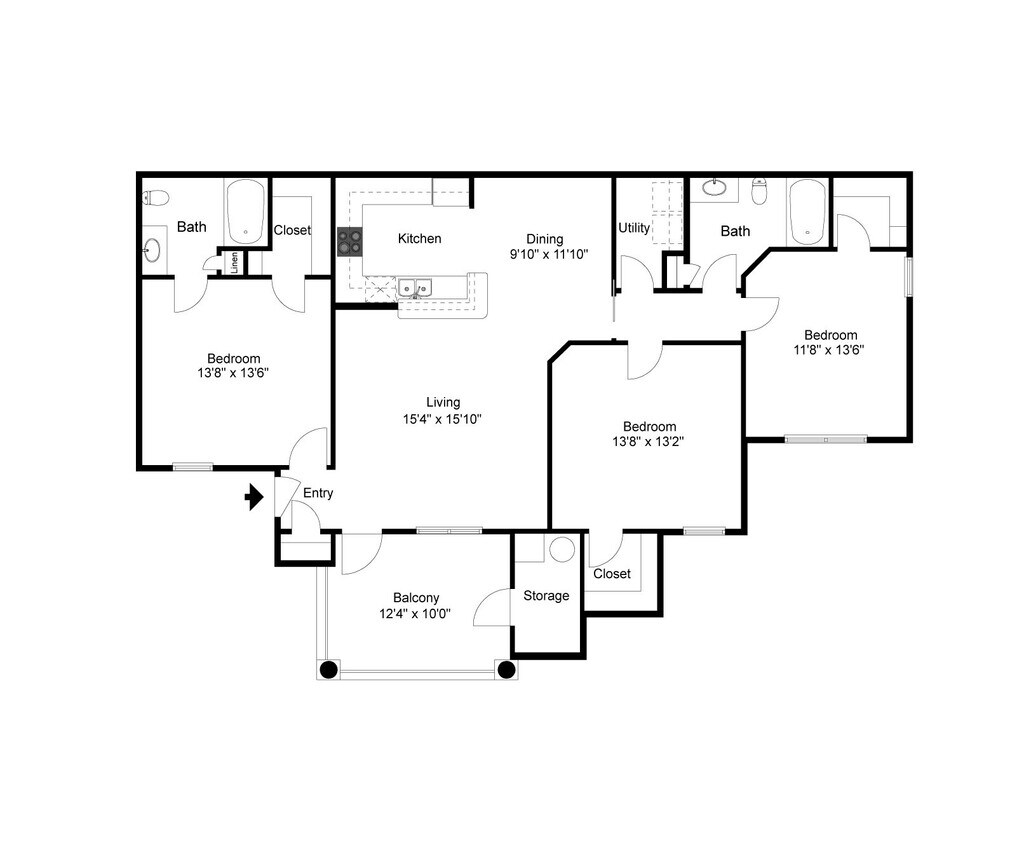 2 Bedroom Balcony - Floorplan 3 Apartment Unit: 5301Apartment Model: 2 Bedroom Balcony$1,6922 Bedroom, 2 Bath, 1099 sq ftAvailable November 8, 20252 Bedroom Sunroom