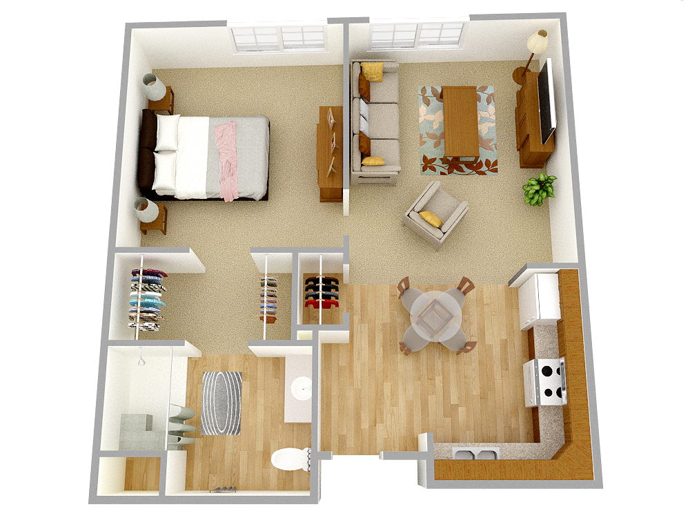 1 Bed, 1 Bath, 680 sq ftModel Gallery