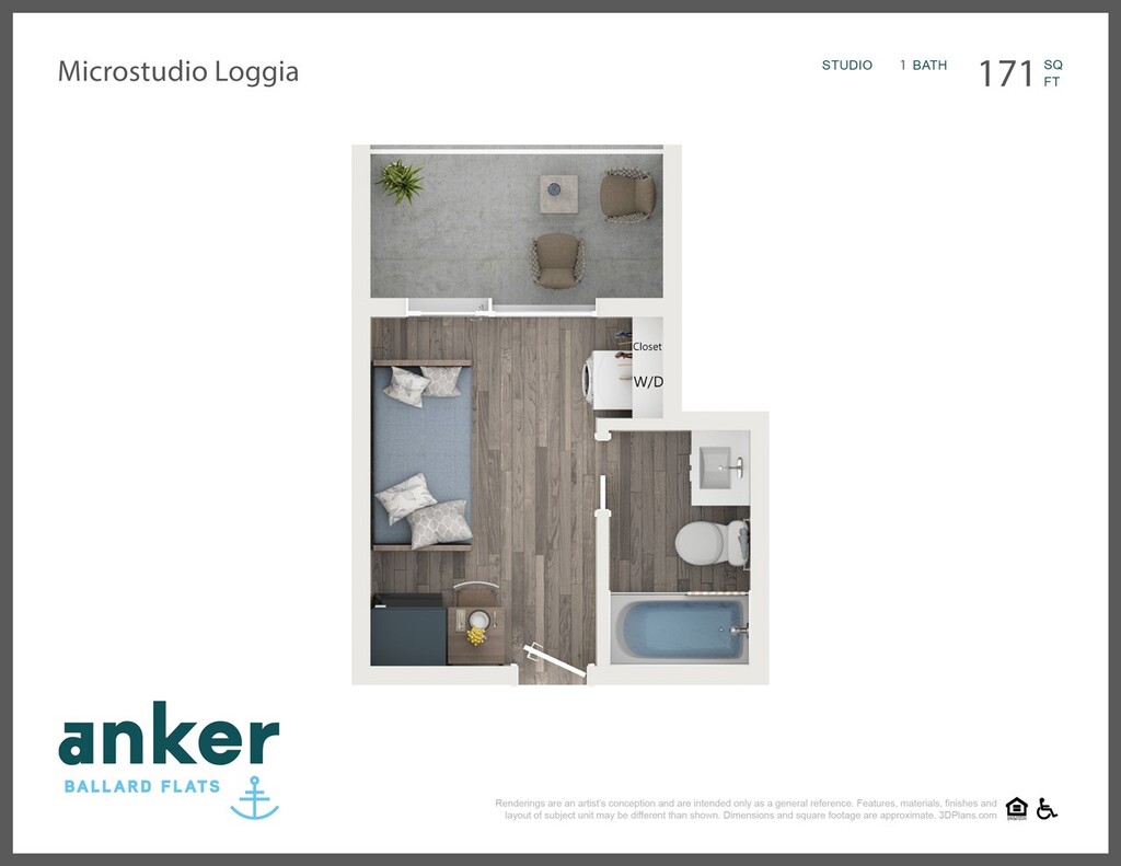 Microstudio with Loggia - Floorplan 7 Apartment Unit: 502-FApartment Model: Microstudio with Loggia$1,325Studio, 1 Bath, 171 sq ftAvailable NowStandard Studio