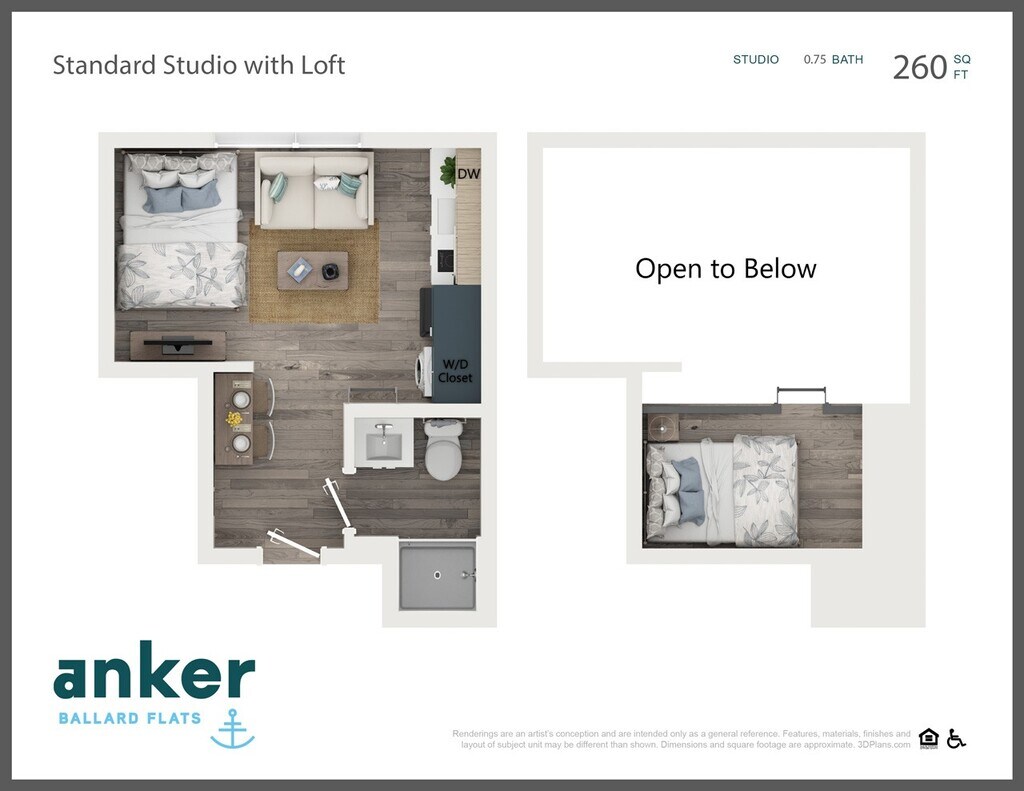 Anker Ballard offers Studio apartments starting from $1,179 and having 171–462 sq ft. Here is the current pricing and availability: