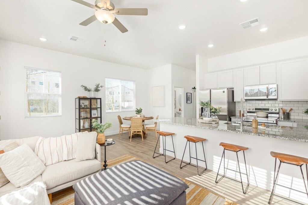 Our well-appointed townhomes for rent are your Oasis located in East Mesa, Arizona. Home at Annex at Cadence welcomes you with our 3-bedroom floorplans featuring stainless steel appliances, granite countertops, and more. Enjoy more of life with access to community amenities at Cadence at Gateway Community Center.
