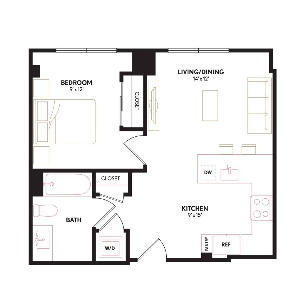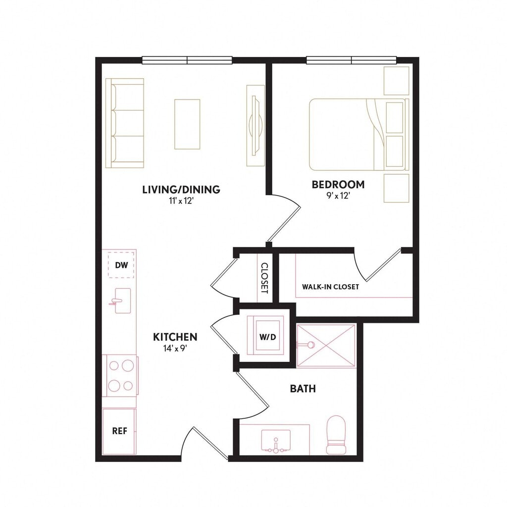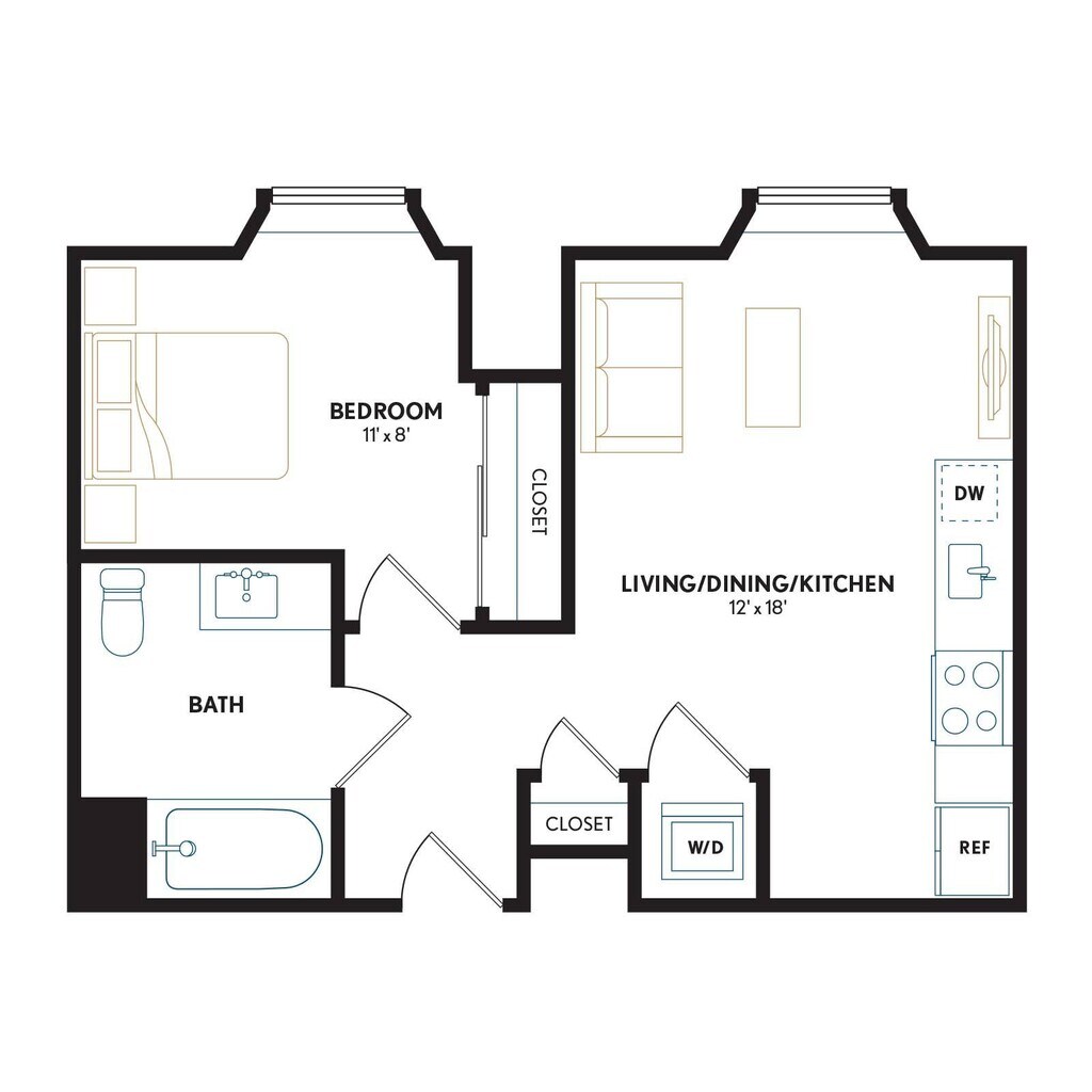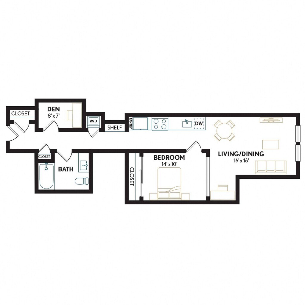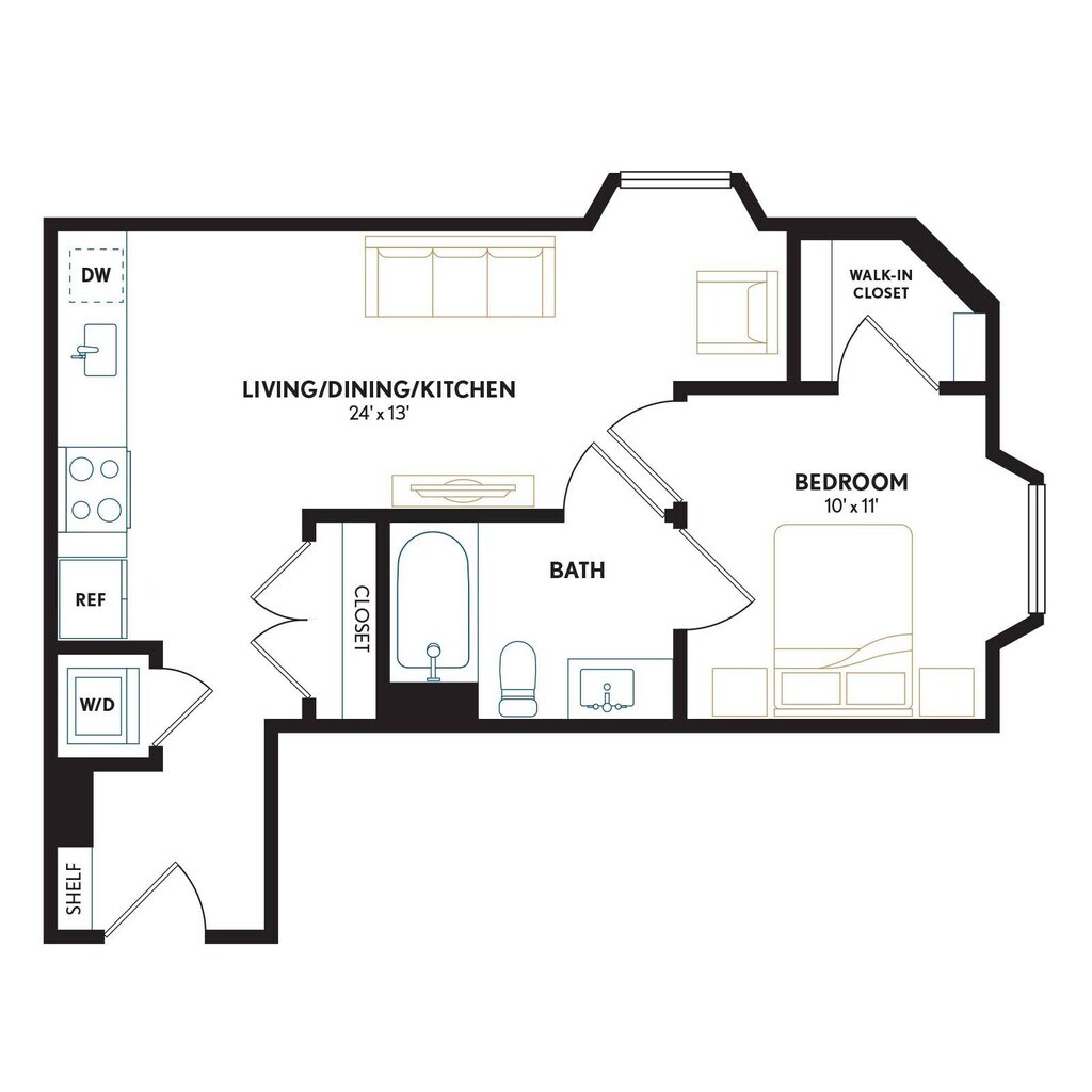 S14 - Floorplan 1 Apartment Unit: 0173Apartment Model: S14$2,207Studio, 1 Bath, 419 sq ftAvailable NowFloorplan S1