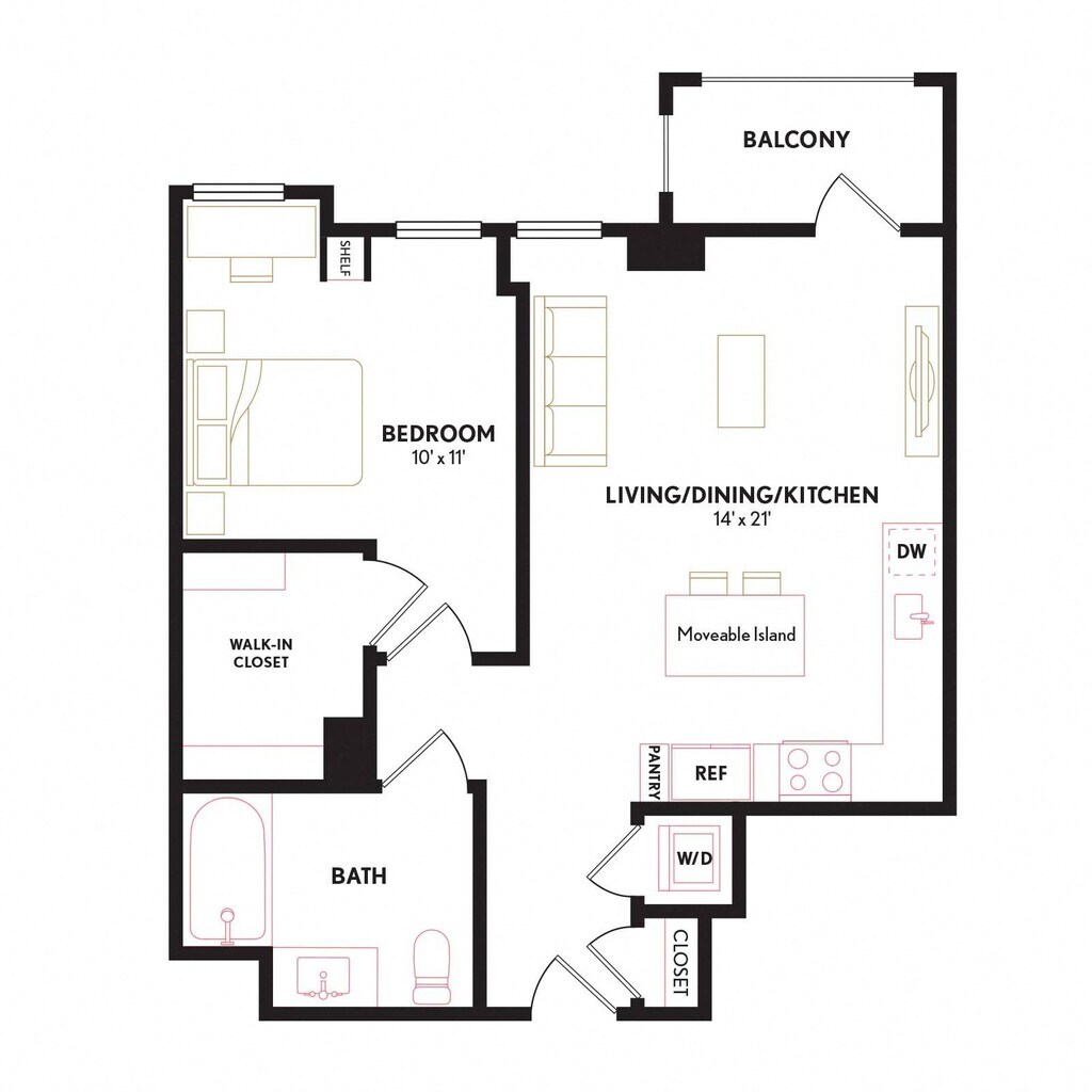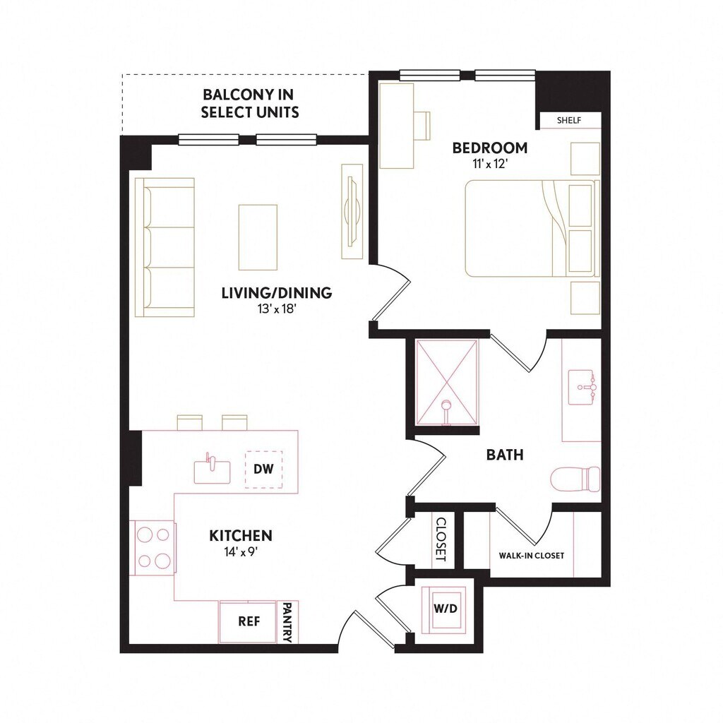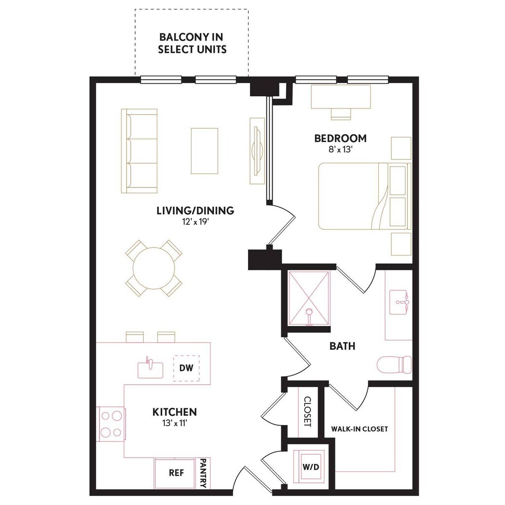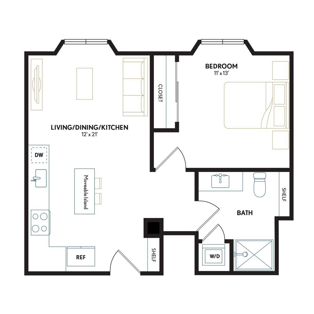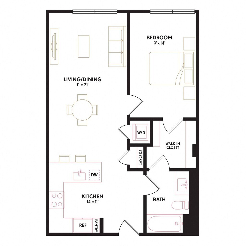 S14 - Floorplan 1 Apartment Unit: 0173Apartment Model: S14$2,207Studio, 1 Bath, 419 sq ftAvailable NowFloorplan S1
