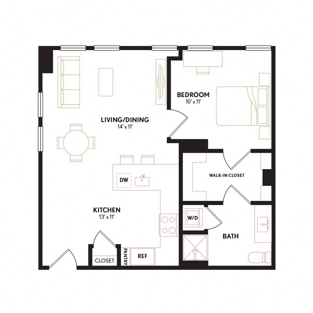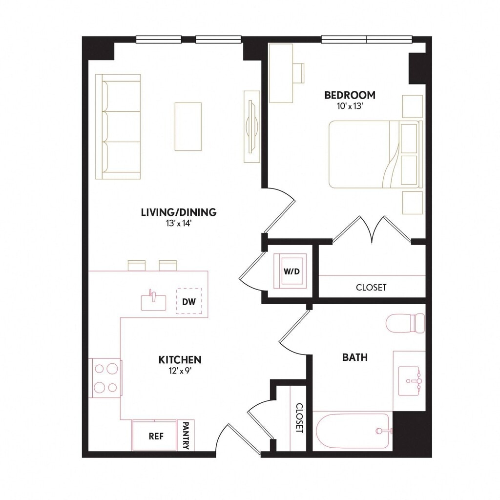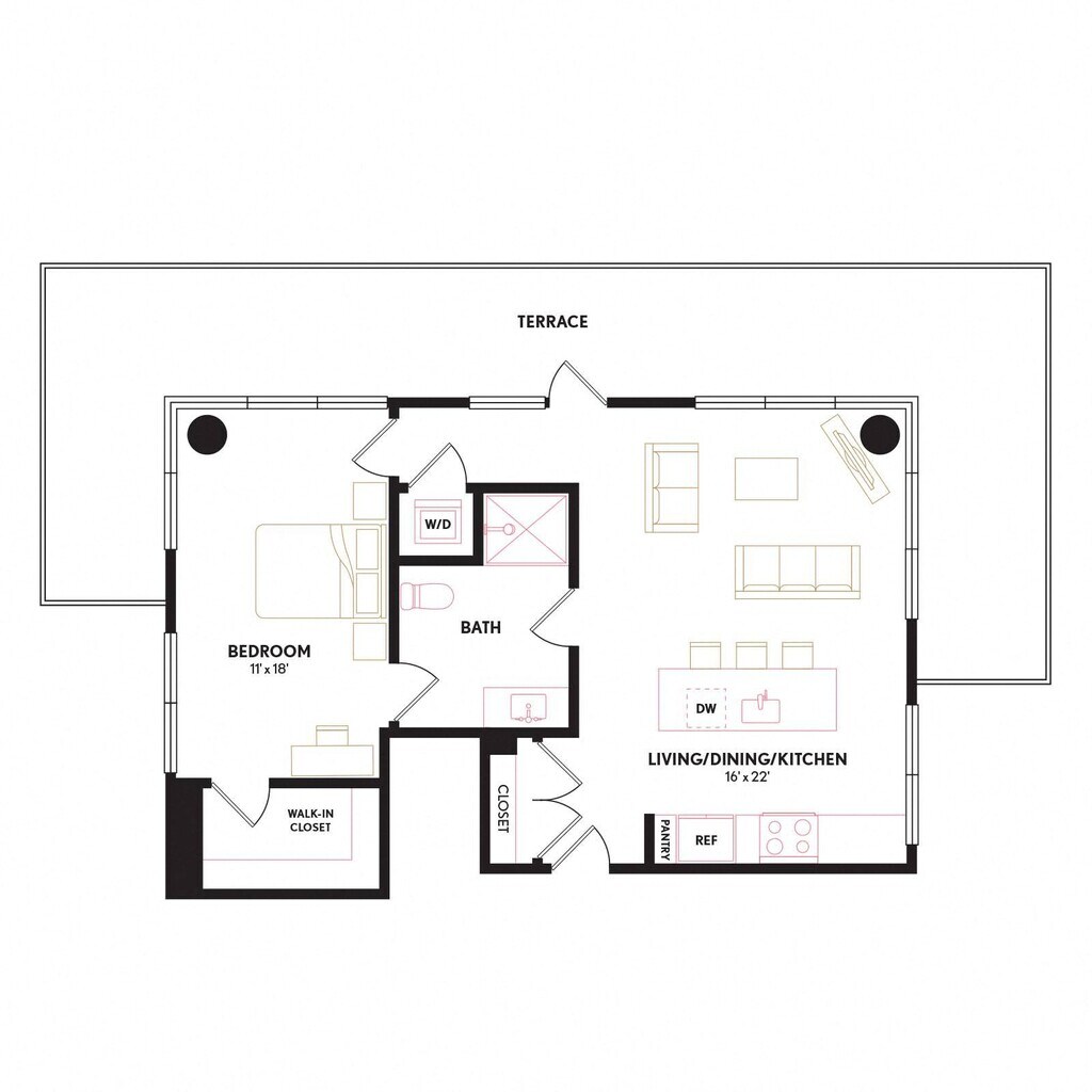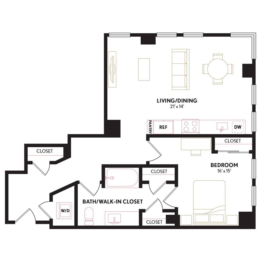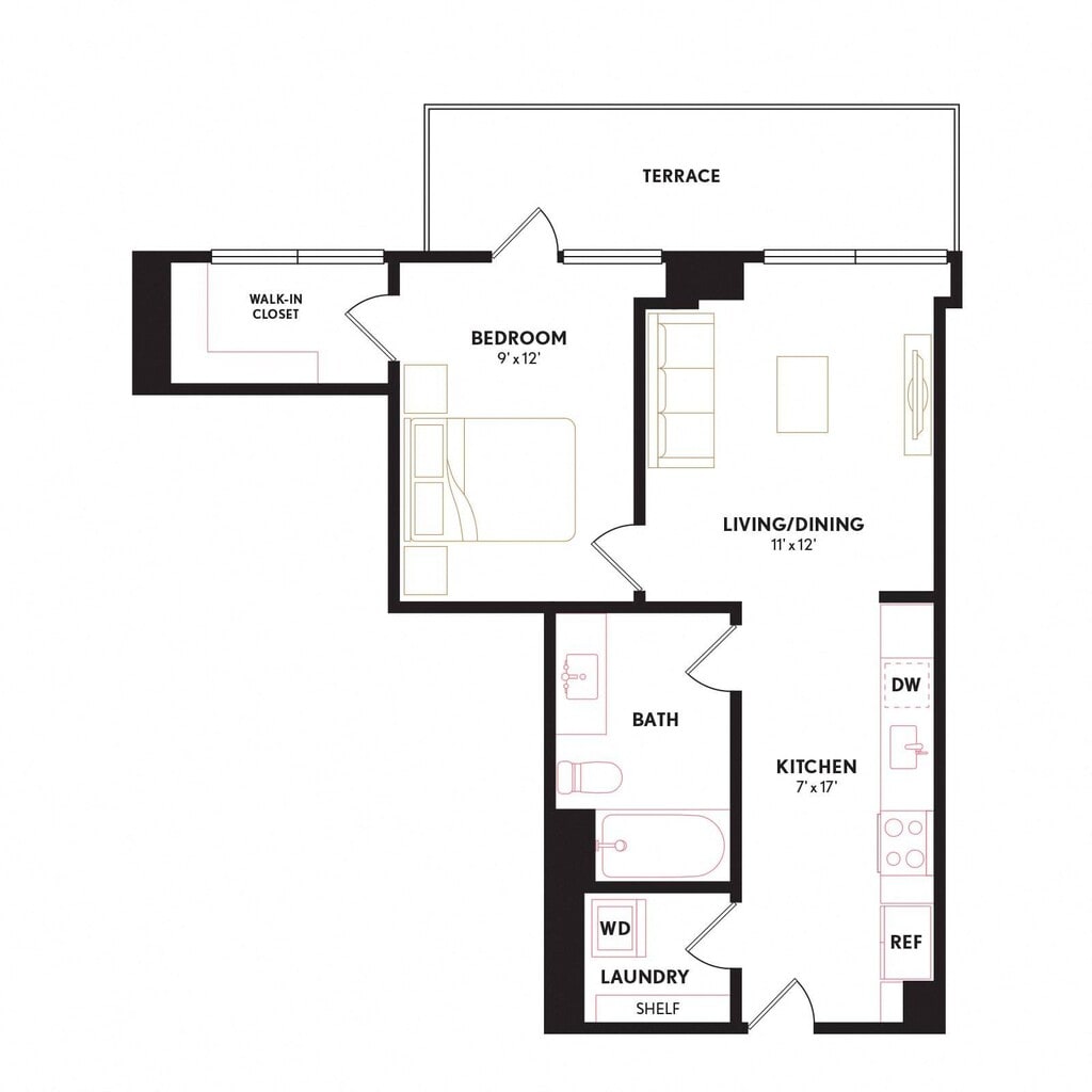 S14 - Floorplan 1 Apartment Unit: 0173Apartment Model: S14$2,207Studio, 1 Bath, 419 sq ftAvailable NowFloorplan S1