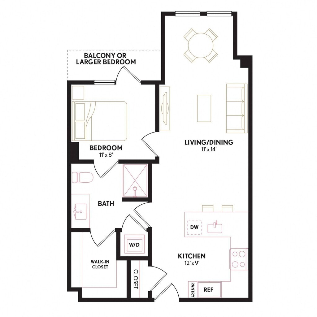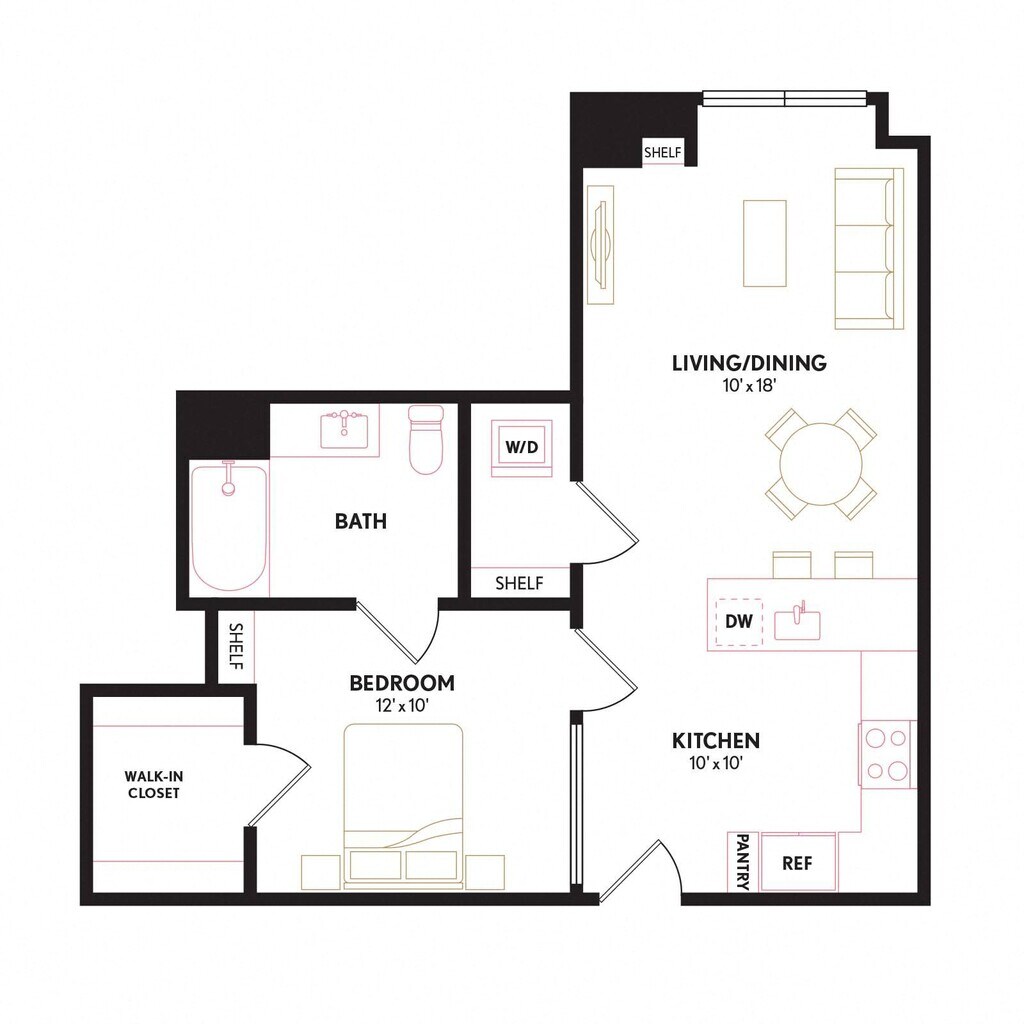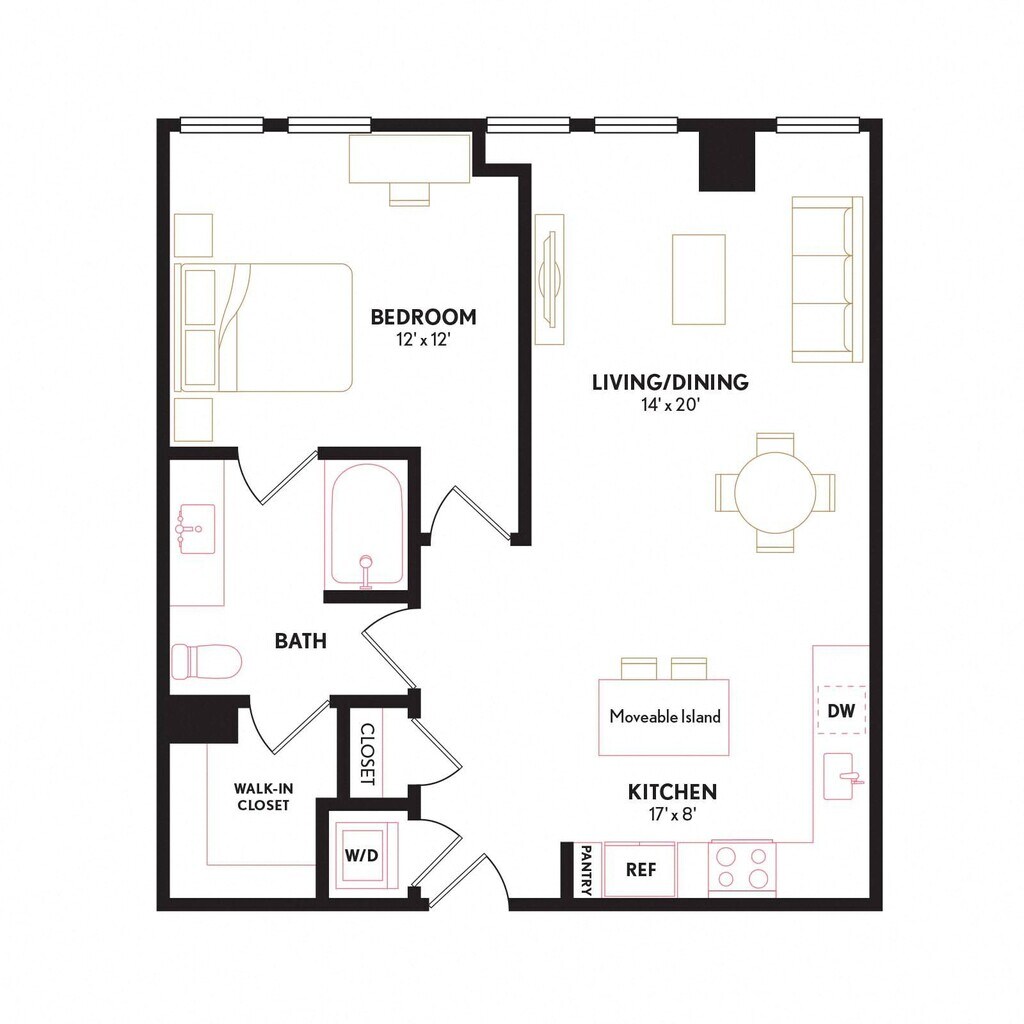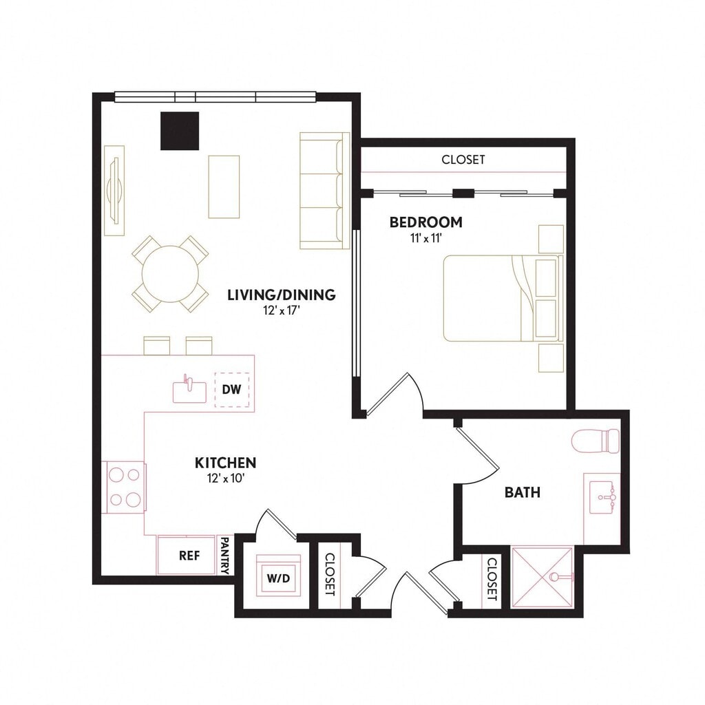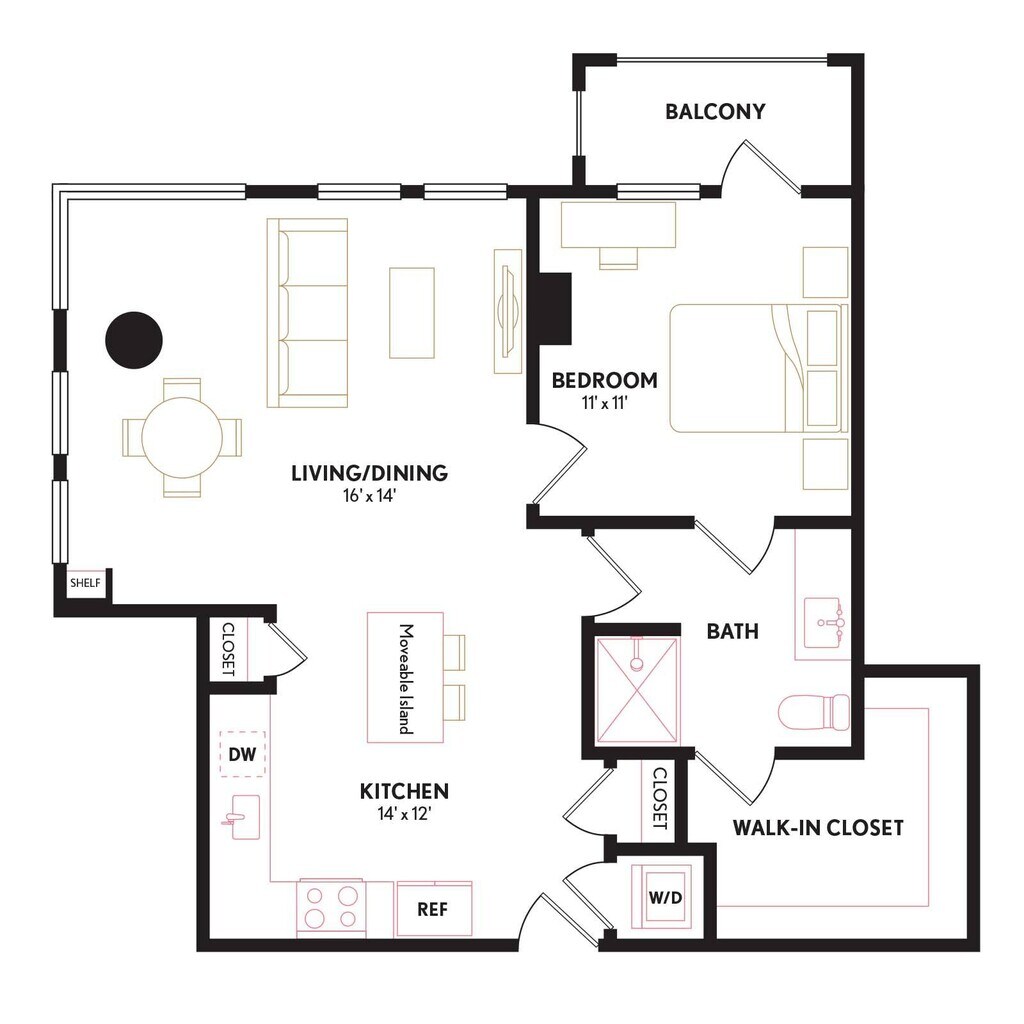S14 - Floorplan 1 Apartment Unit: 0173Apartment Model: S14$2,207Studio, 1 Bath, 419 sq ftAvailable NowFloorplan S1