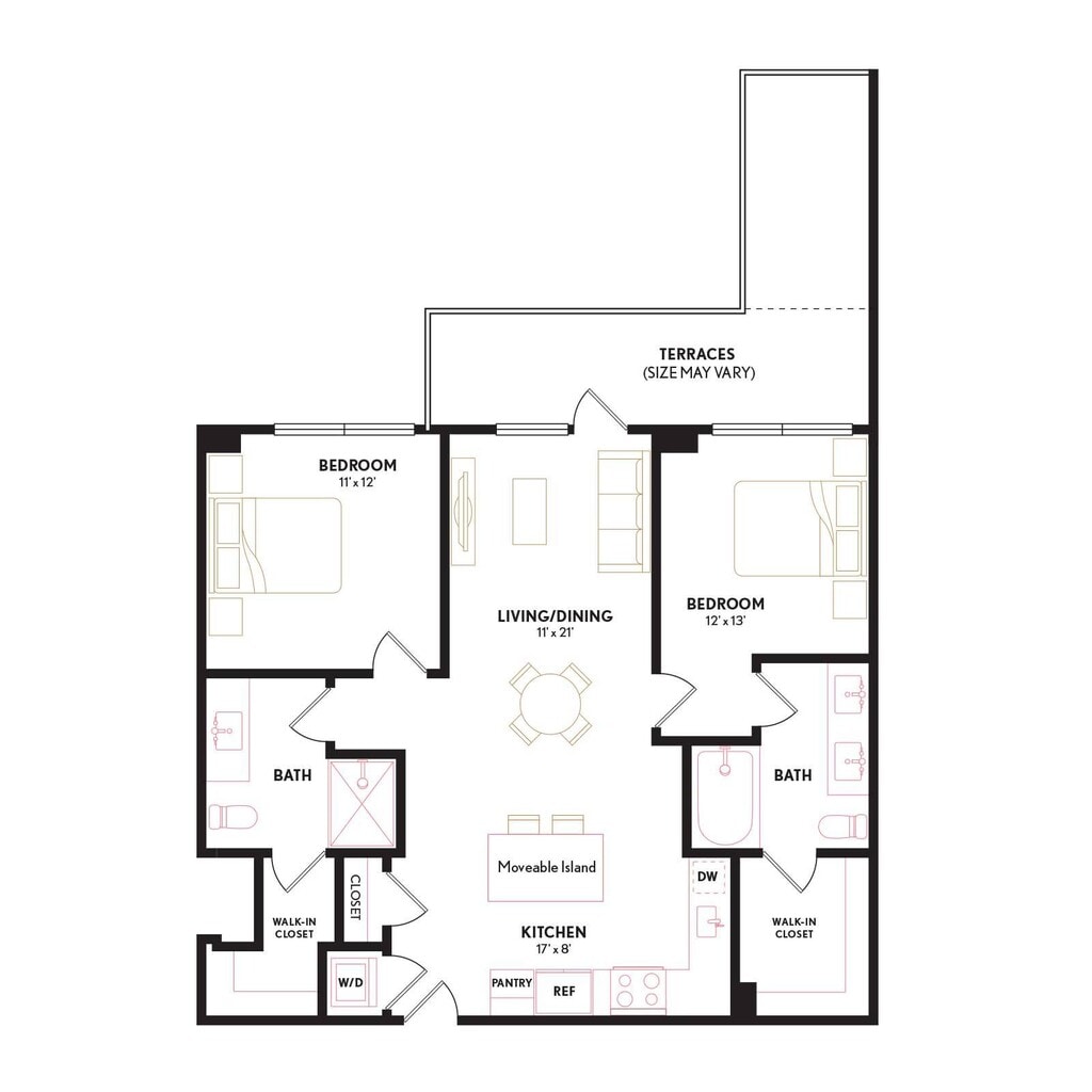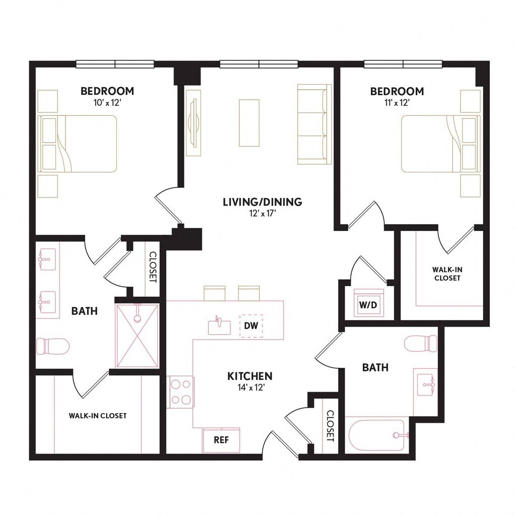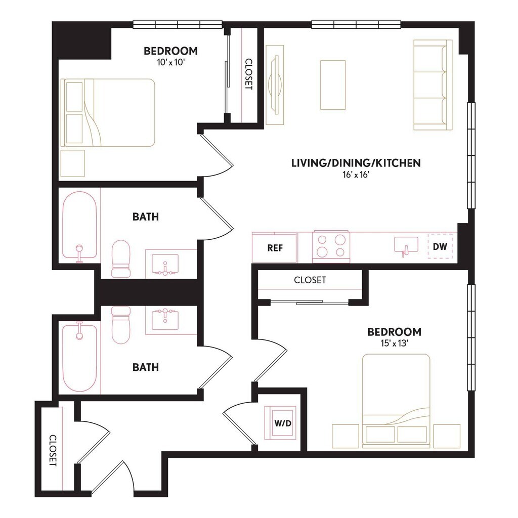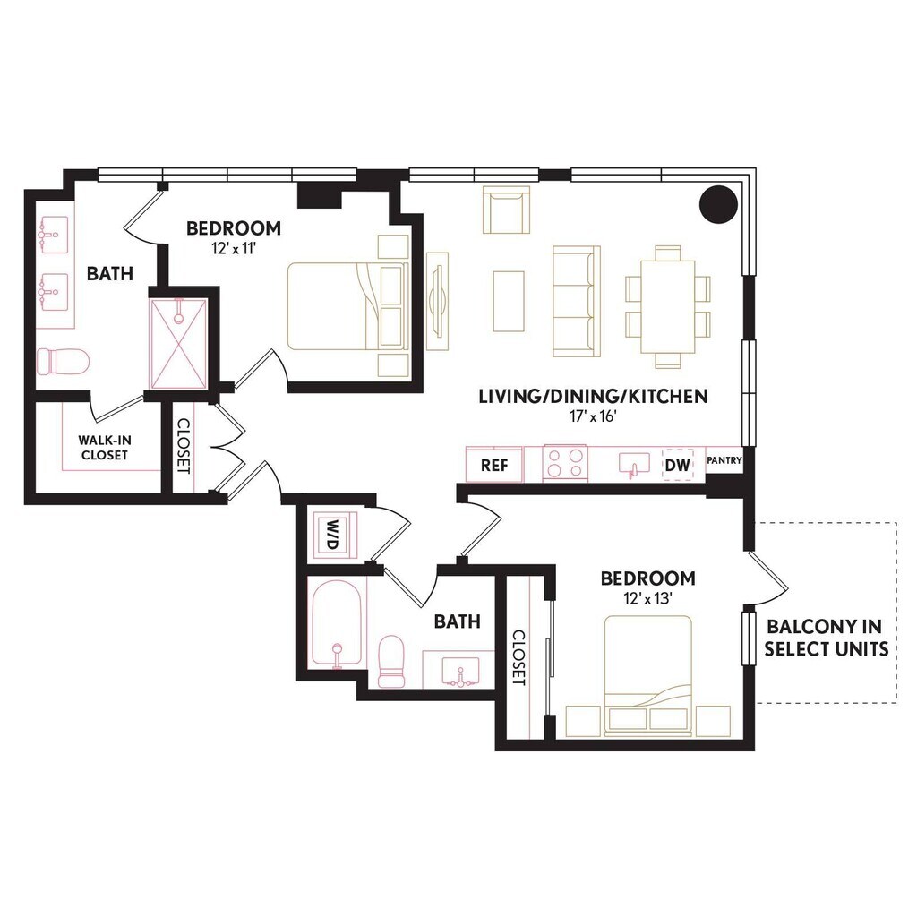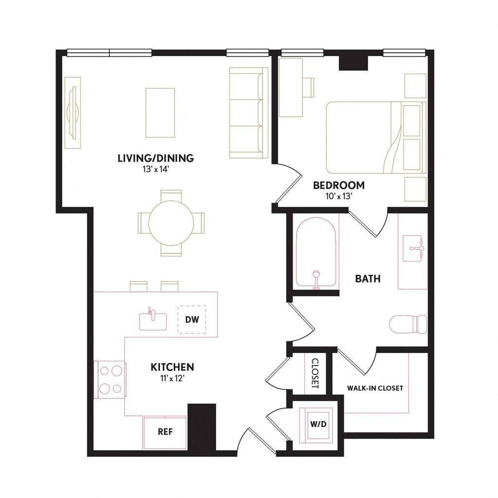 S14 - Floorplan 1 Apartment Unit: 0173Apartment Model: S14$2,207Studio, 1 Bath, 419 sq ftAvailable NowFloorplan S1