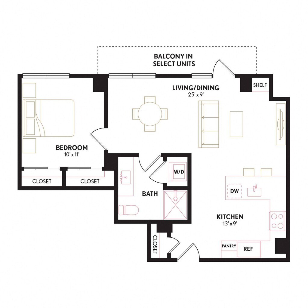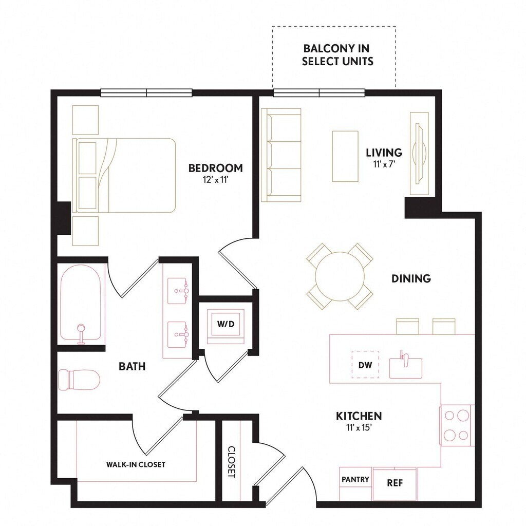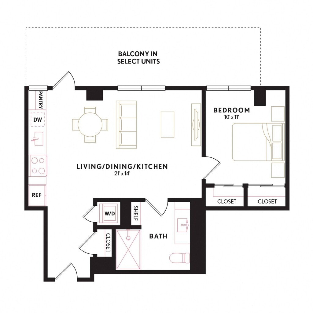 Studio, 1 Bath, 416 sq ftAvailable NowModel Gallery