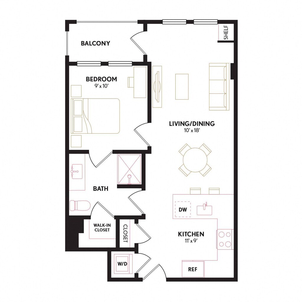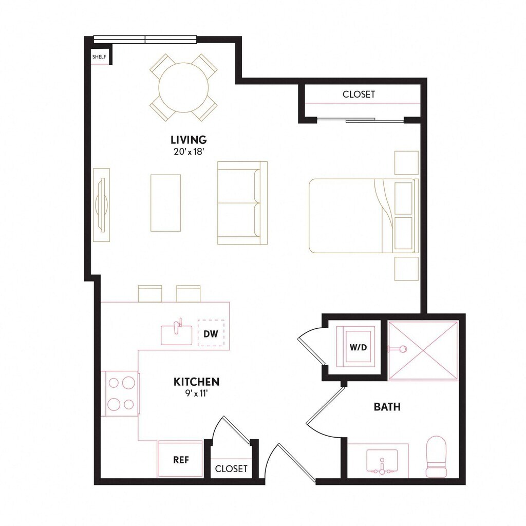 Apartment Model: S9HFrom $2,156Studio, 1 Bath, 437 sq ftAvailable NowFloor plans are artist's rendering. All dimensions are approximate. Actual product and specifications may vary in dimension or detail. Not all features are available in every rental home. Prices and availability are subject to change. Base rent is based on monthly frequency. Additional fees may apply, such as but not limited to package delivery, trash, water, amenities, etc. Deposits vary. Please see a representative for details.