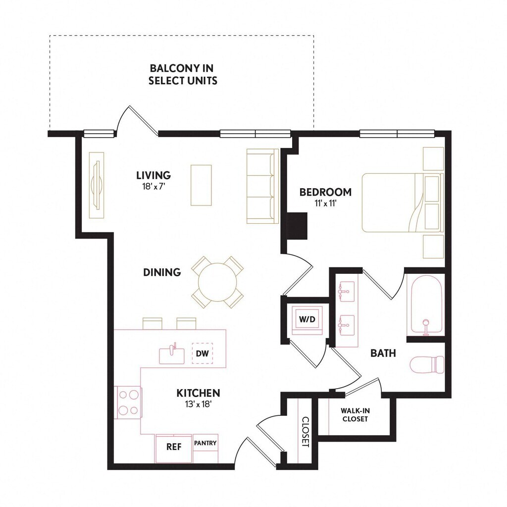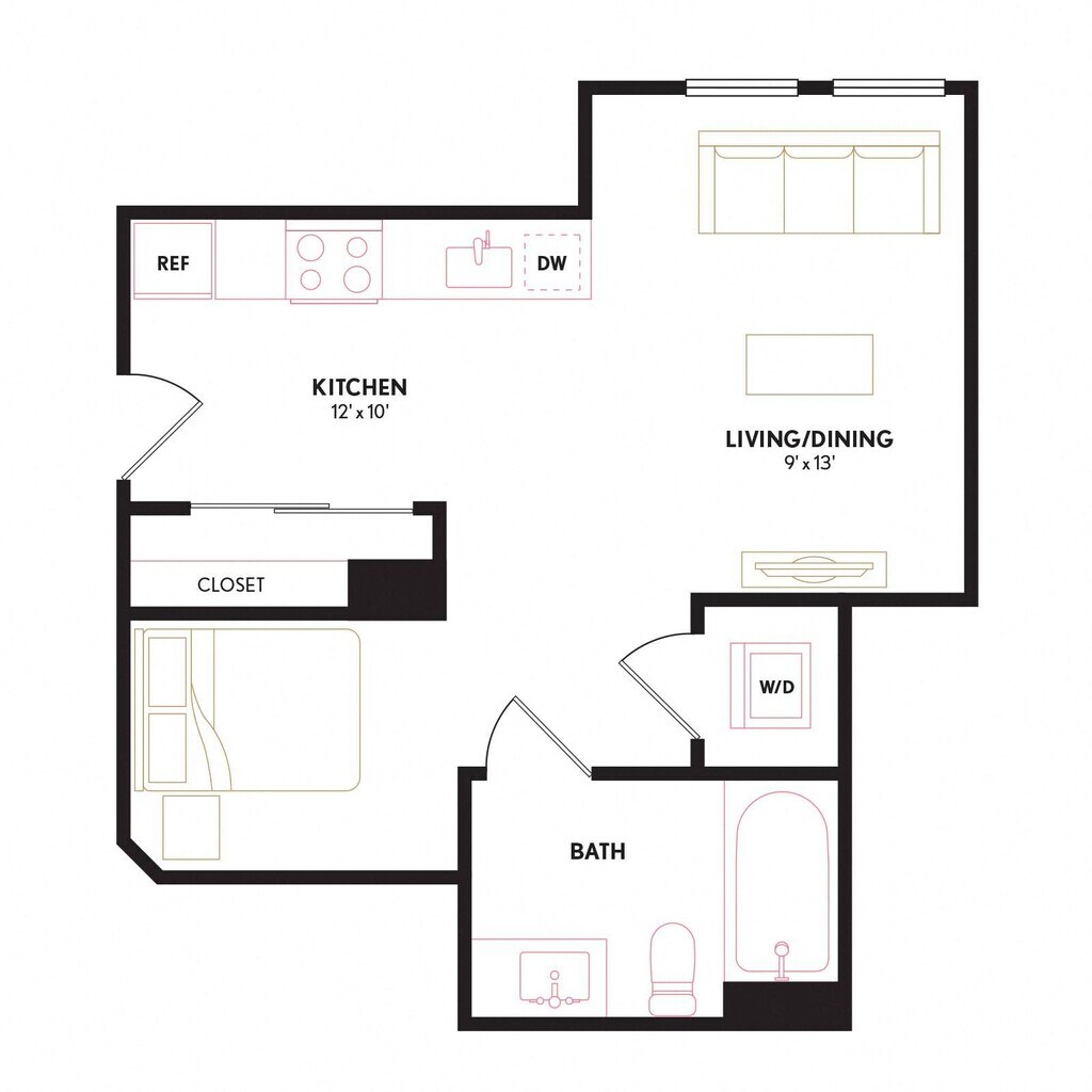 Apartment Model: S11From $2,139Studio, 1 Bath, 429 sq ftAvailable NowFloor plans are artist's rendering. All dimensions are approximate. Actual product and specifications may vary in dimension or detail. Not all features are available in every rental home. Please see a representative for details.