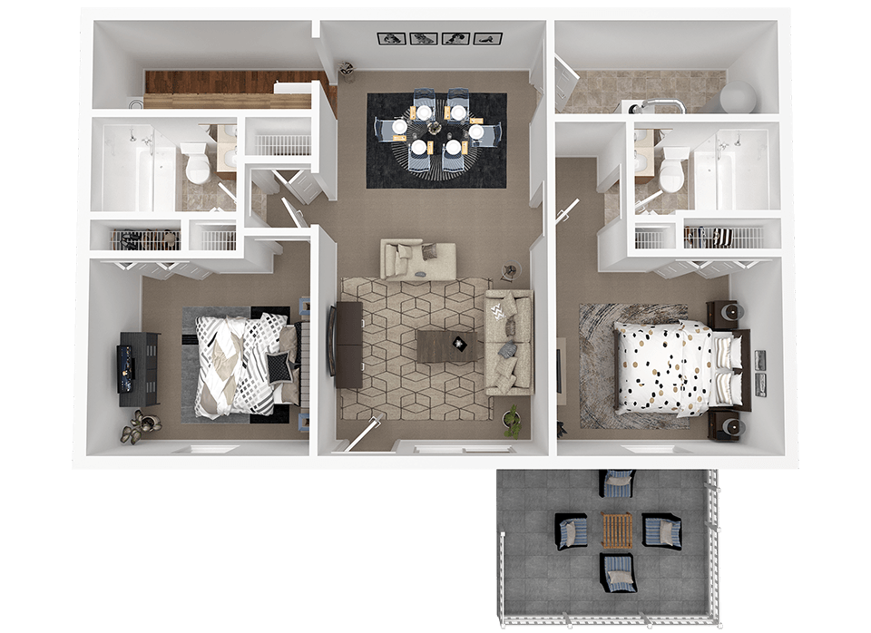 2 Beds, 2 Baths, 864 sq ftModel Gallery
