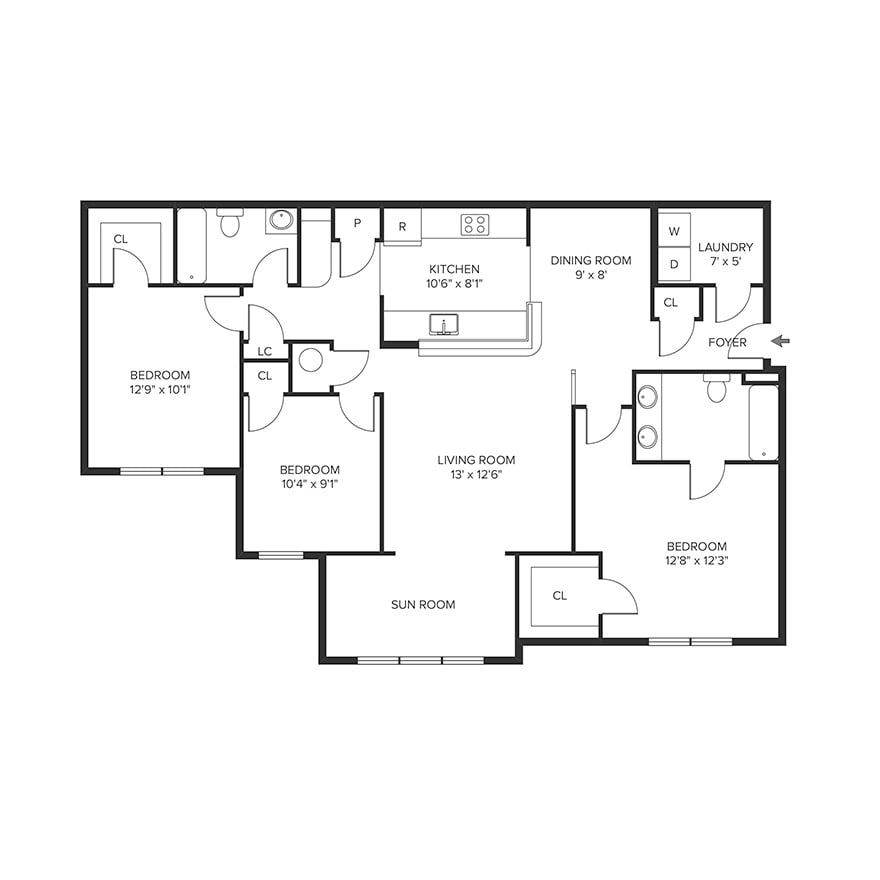 - One-, Two- & Three-Bedroom Floor Plans