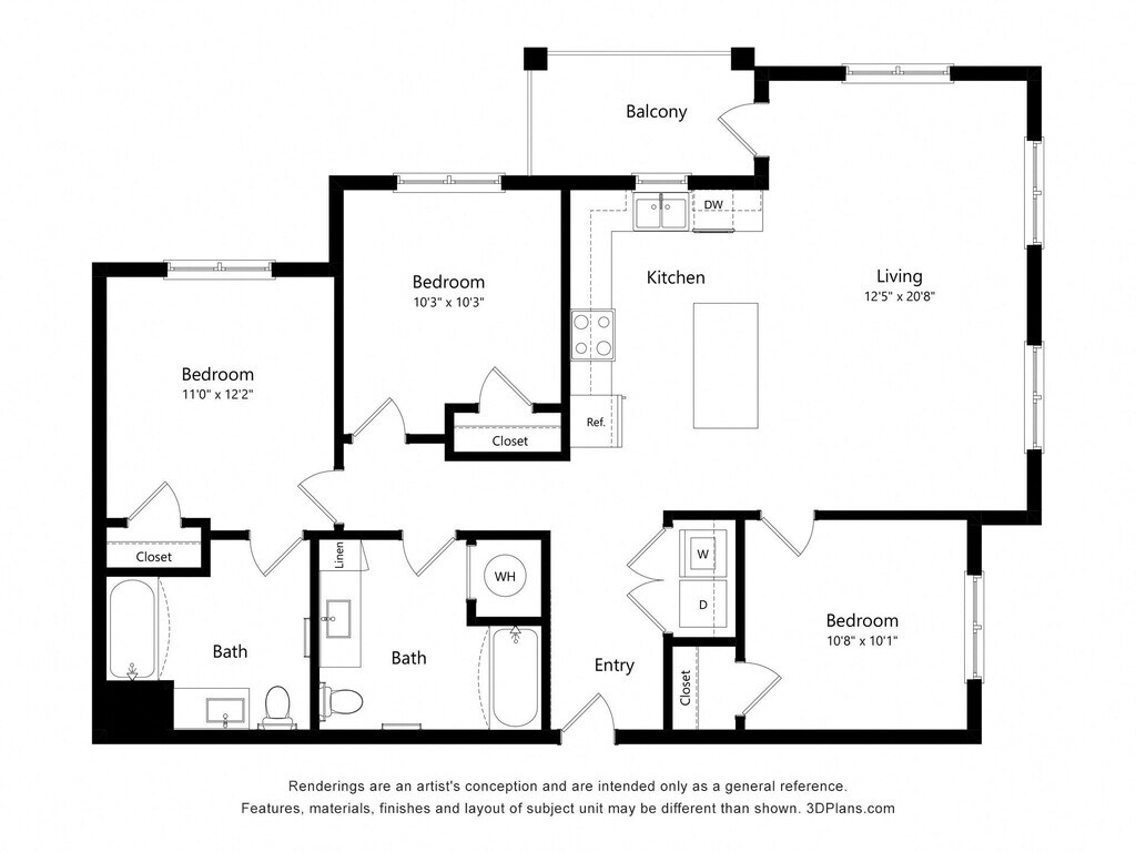 Apartment Model: 3A3 Bedroom, 2 Bath, 1172 sq ftAvailable July 1, 2026![]()