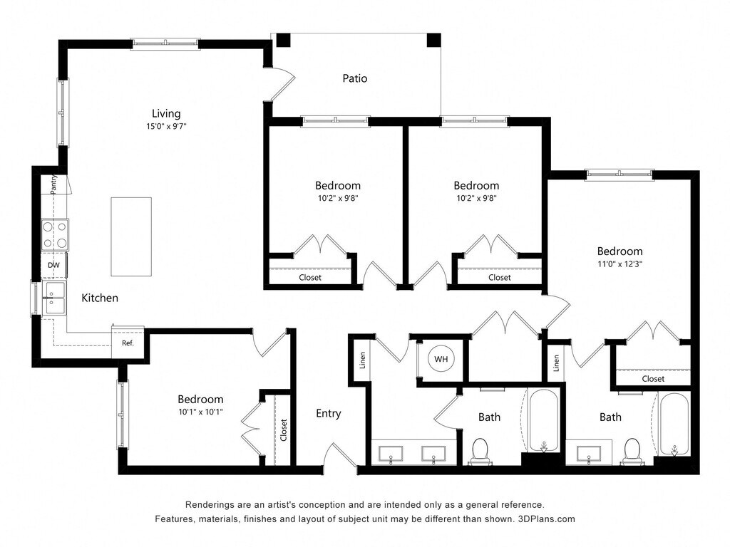 Apartment Model: 3B3 Bedroom, 2 Bath, 1217 sq ftAvailable July 1, 2026![]()
