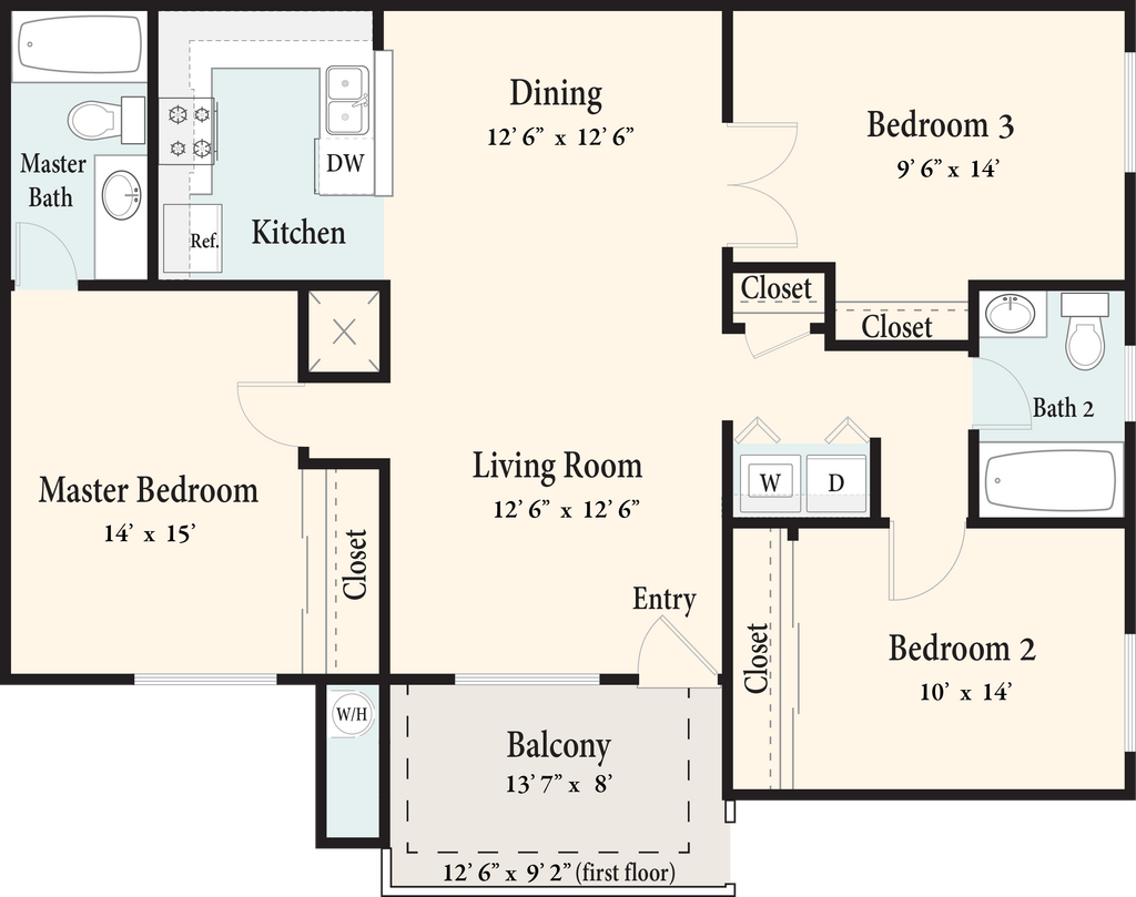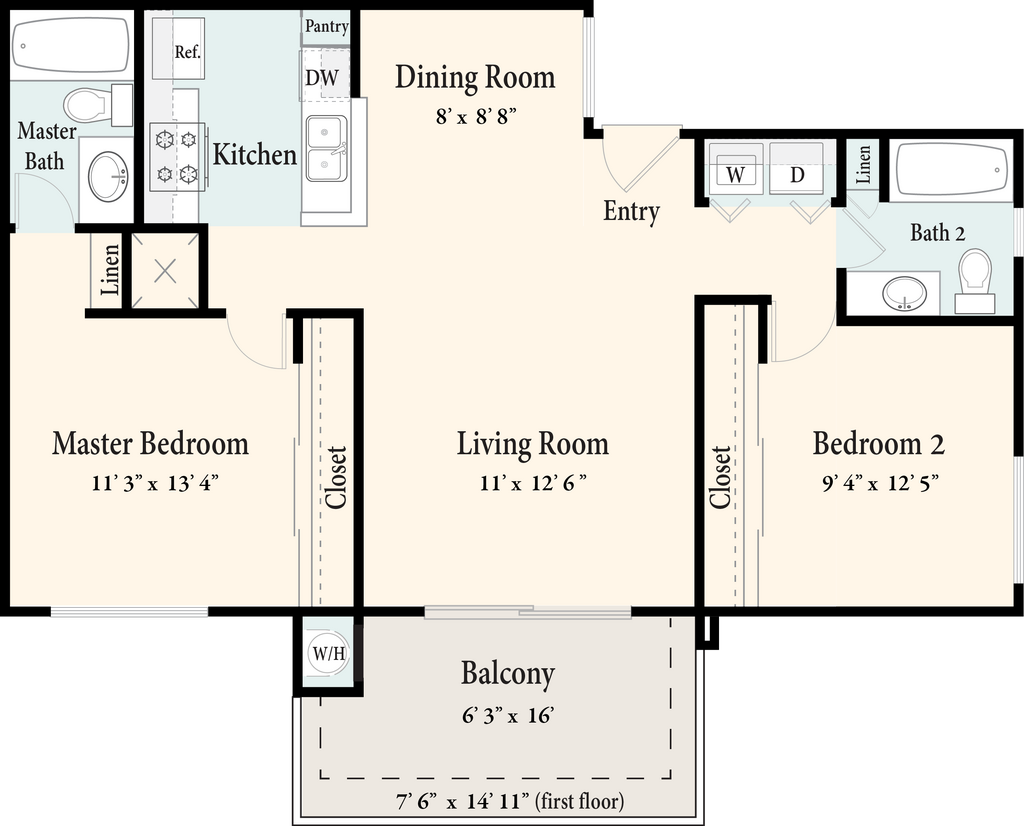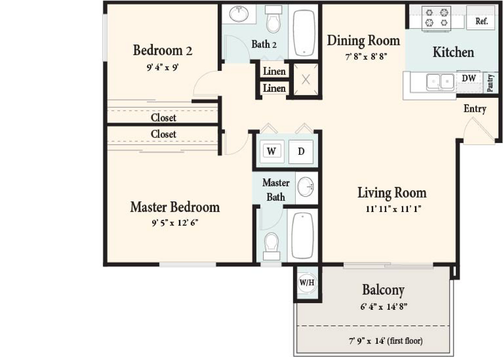 Apartment Model: The Deerfield - UpCall For Rates2 Bedroom, 2 Bath, 899 sq ftUnavailable![]()