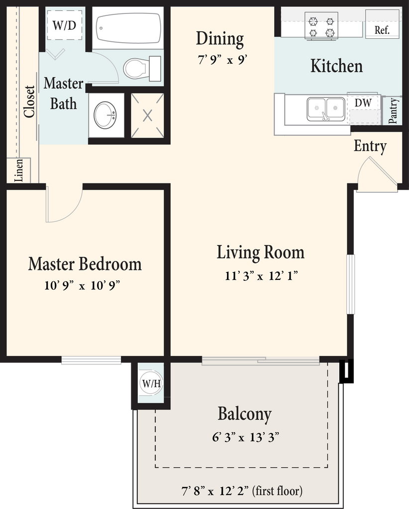 1 Bed, 1 Bath, 627 sq ftModel Gallery