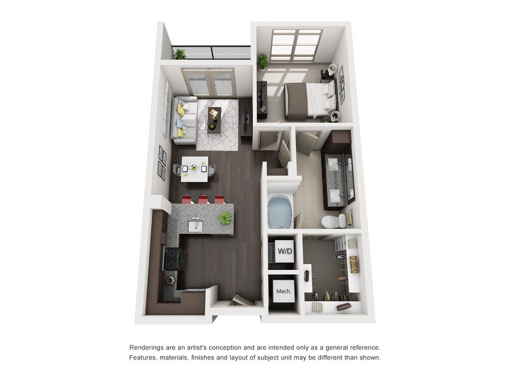 1 Bed, 1 Bath, 643 sq ftAvailable NowModel Gallery