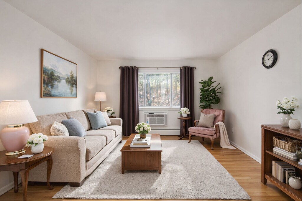 Two bedroom, one bathroom apartment with 760 square feet of comfortable living space. Features include a full kitchen with range, refrigerator, built-in dishwasher, and in-unit air conditioning. Heat, hot and cold water, and trash removal are included. Conveniently located near Binghamton University, Lockheed Martin, shopping, recreation, and public transit. Set in a quiet community with open green space and mature trees. Cats welcome.