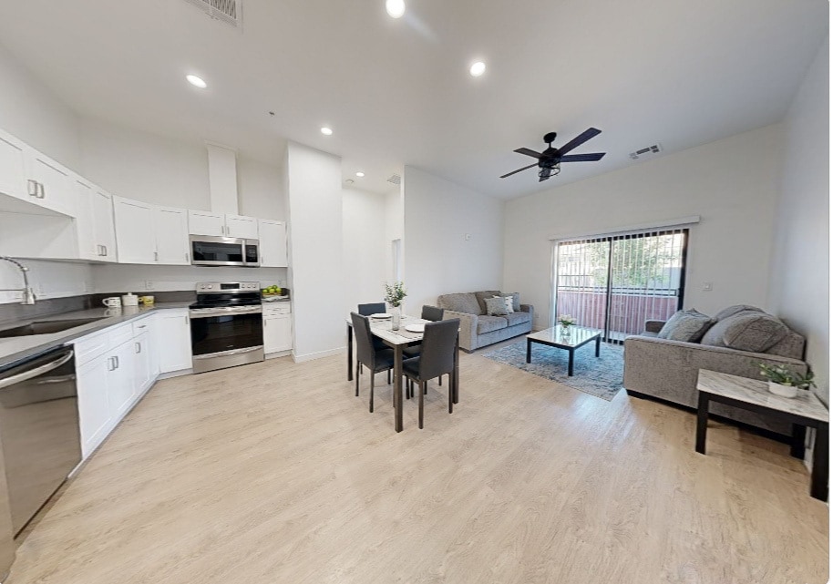 Welcome to Apache Rock Apartments, your stylish new apartment home in Tempe, Arizona. Nestled in an exclusive community of just 75 apartment homes, we offer the perfect blend of comfort, class and convenience. Our spacious apartments feature open kitchens with sleek, modern finishes and high-end, energy-efficient stainless-steel appliances, built in microwaves, dishwashers and deep sinks with upgraded pull out faucets. Each apartment comes equip with a full-size LG washer and dryer, and private patios or yards to enhance your lifestyle. Relax by the sparkling pool, enjoy a good work out in our 24-hour state-of-the-art fitness center, or enjoy grilling and socializing in our BBQ lounge area. For your four-legged companions, we’ve got a fully gated dog park where they can play freely. Parking is always free, covered parking coming soon, and just added- an EV charging station for electric vehicles. Plus, with the added peace of mind of living in a fully secure building, you’ll truly feel at home. At Apache Rock, everything we do revolves around our residents. You’ll love being close to favorites like Tempe Town Lake, shopping spots such as at Tempe Market Place & Mesa Market Place or grabbing a bite at Culinary Dropout, the best of Tempe is at your fingertips. Quick and easy access to Highways 101 and 202 and 60. We are located less than 1.2 miles from the vibrant ASU community. ASU campus is just minutes away by bike, scooter, or light rail. Furnished Options Available. Discover a better way to live—Experience the Apache Rock Lifestyle!