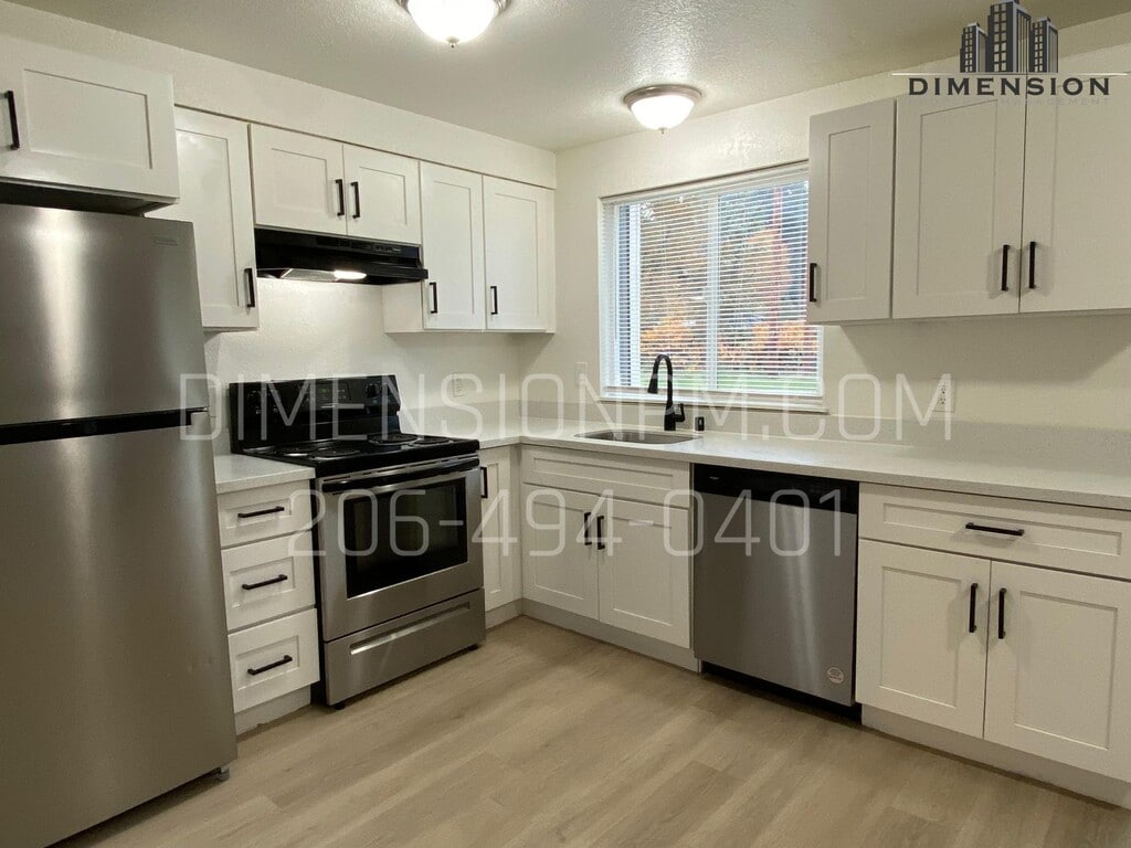 **ABOUT THE AREA** Interurban Trail just steps away. 167 and 18 minutes away. Quiet Street **ABOUT THE APARTMENT** New Kitchen Cabinets Granite countertops Stainless steel appliances New hardwood floors Large rooms with lots of natural light Wood burning fireplace Washer & Dryer hookups Grounds constantly maintained