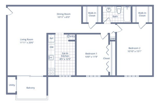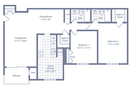 Apartment Model: 1 Bedroom/1 Bathroom - 683 sq ftFrom $1,4821 Bedroom, 1 Bath, 683 sq ftAvailable Now![]()