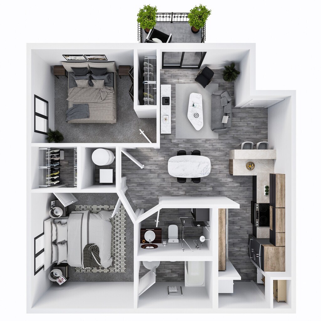 2 Beds, 1 Bath, 750 sq ftAvailable NowModel Gallery