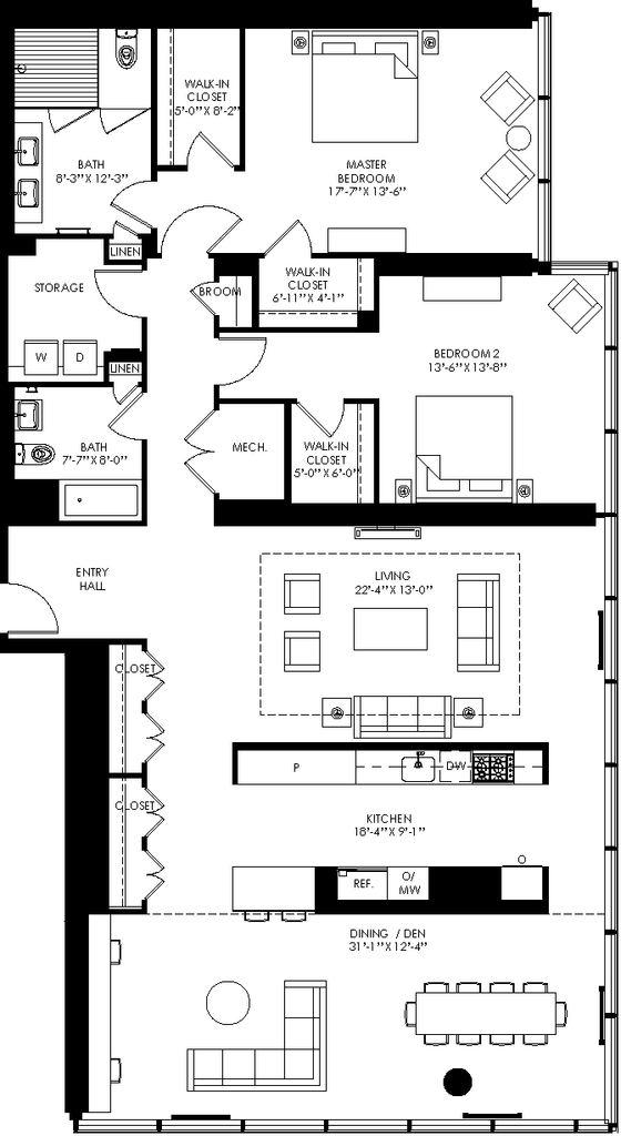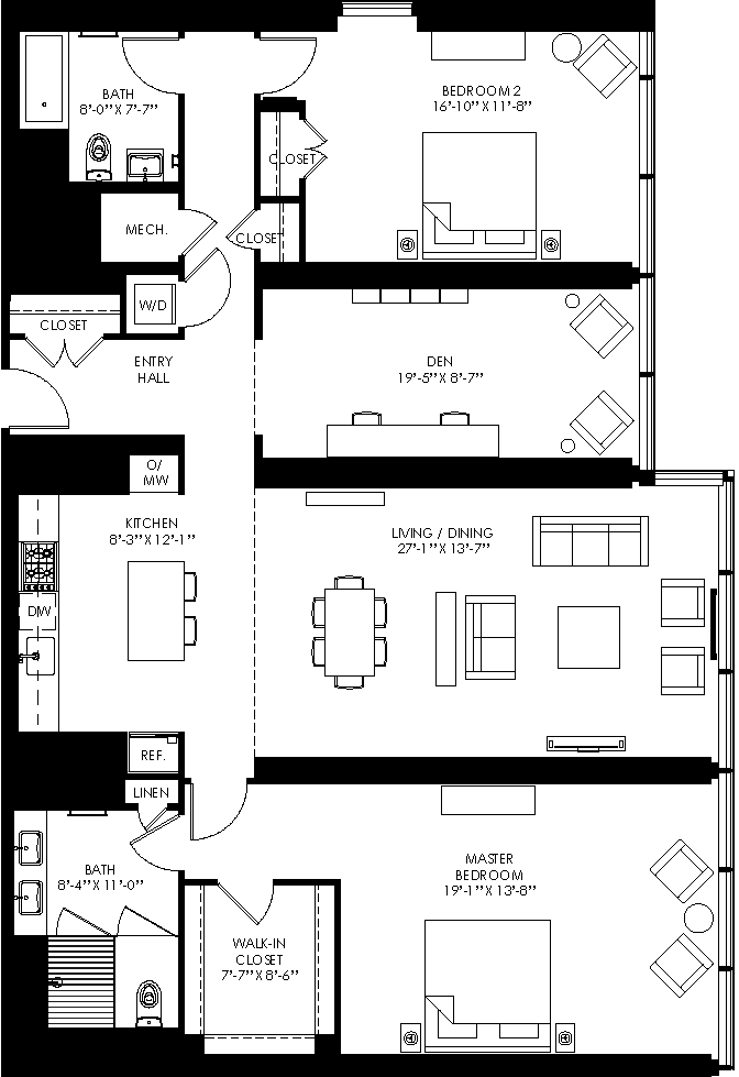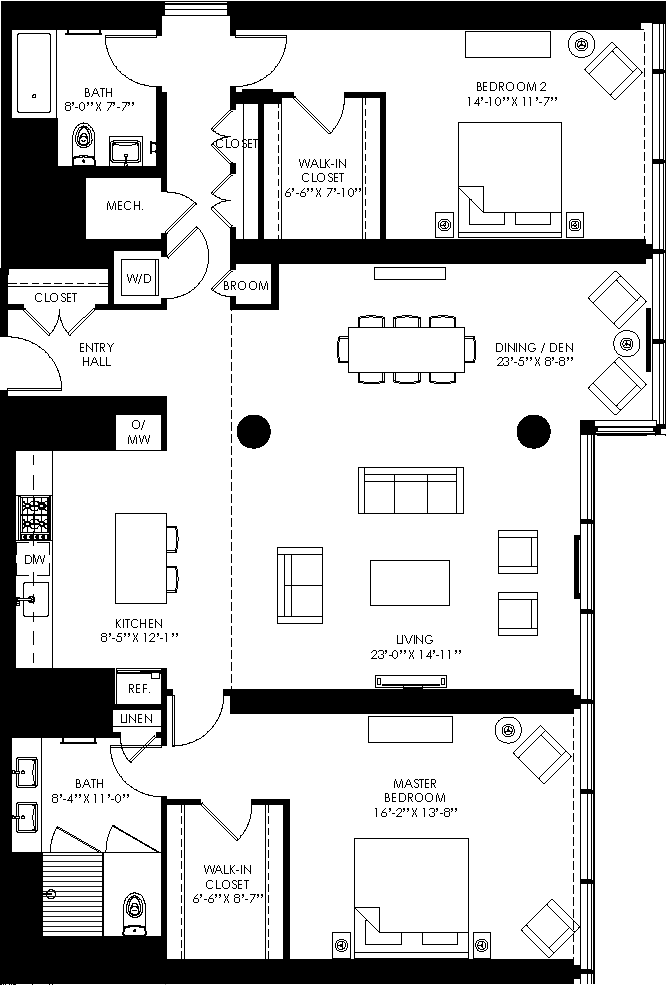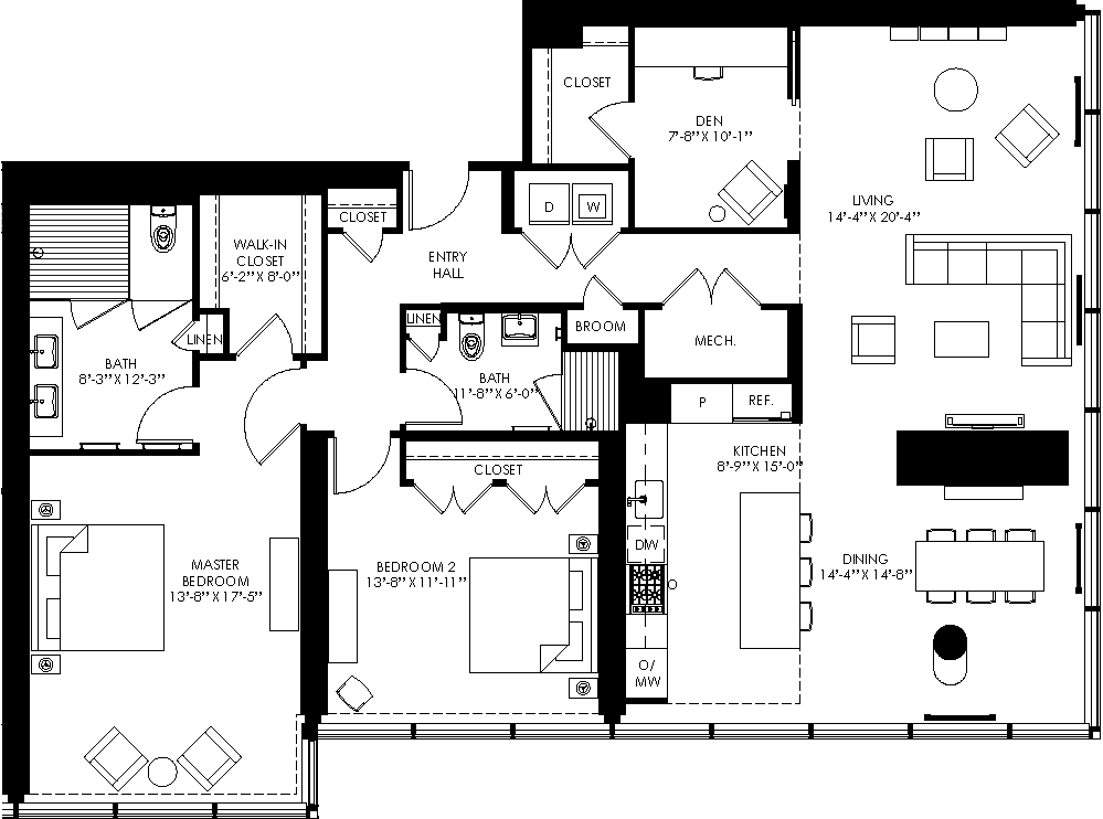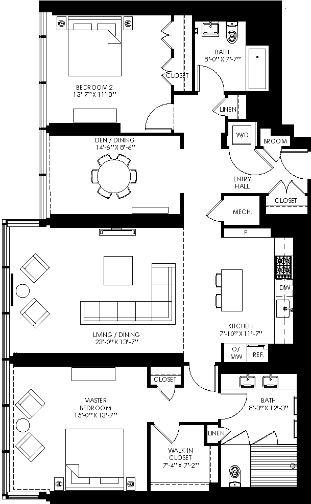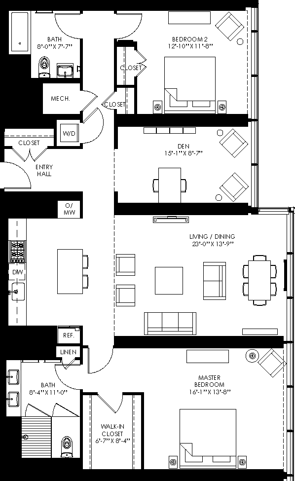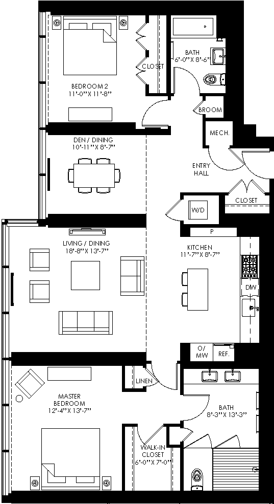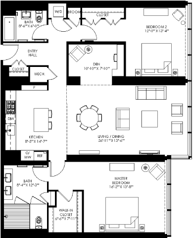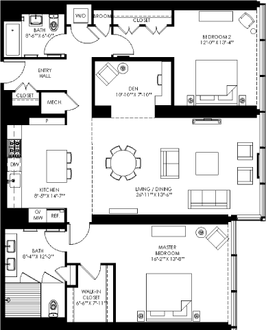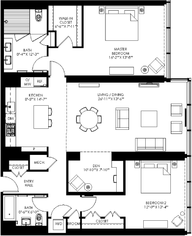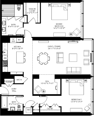 1 Bed/1 Bath Den-ad02 - Floorplan 2 ![]()