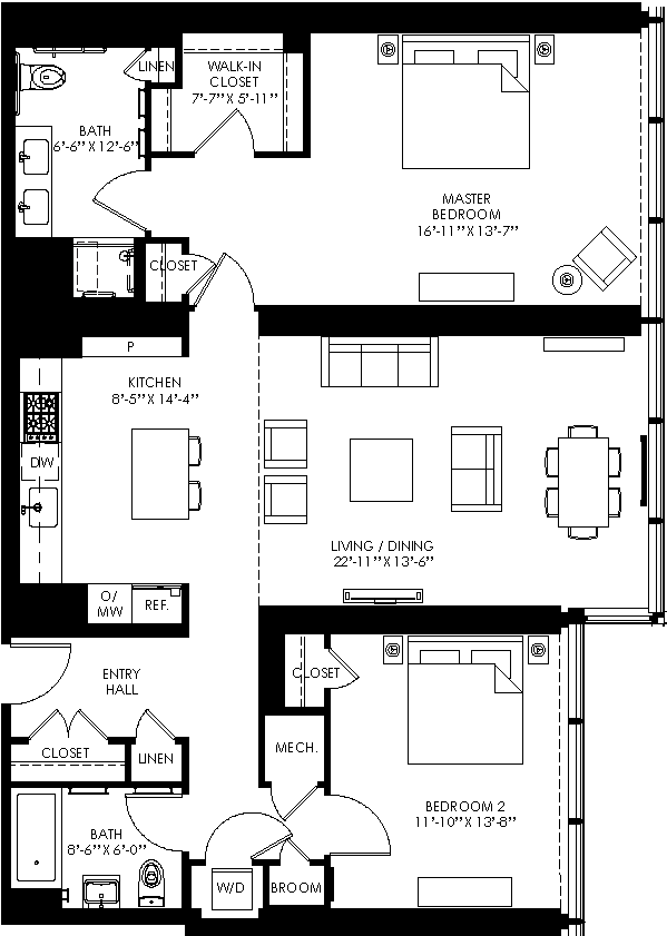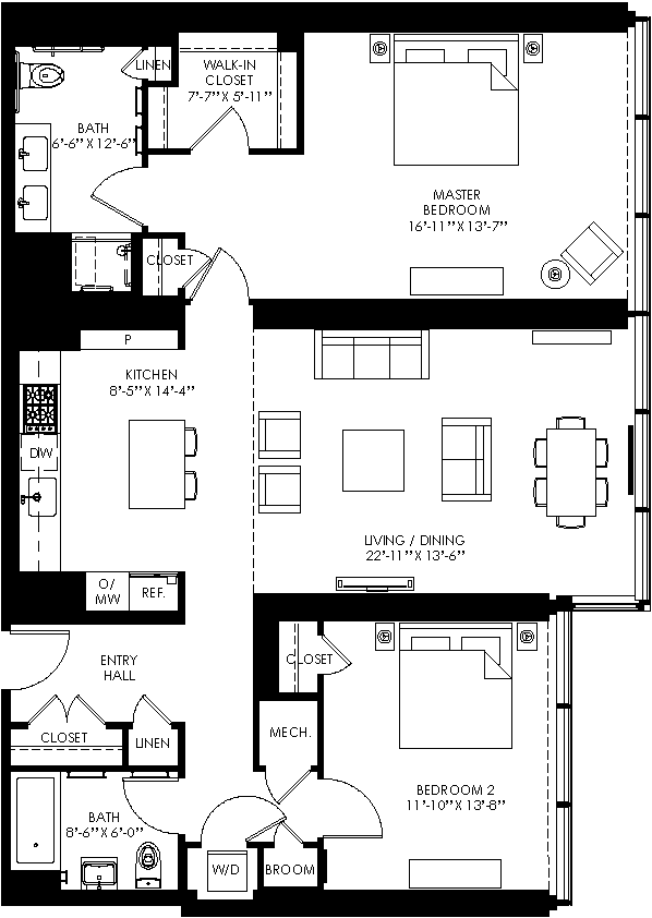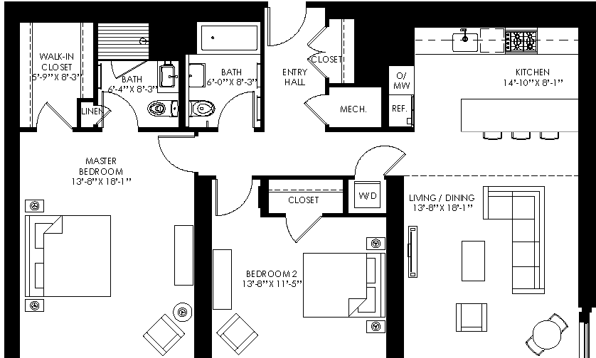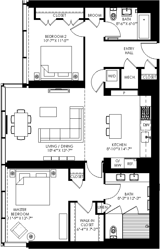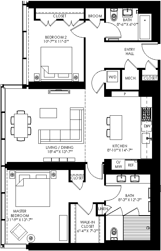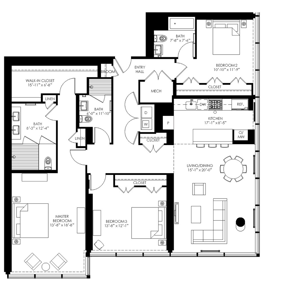 Apartment Model: 1 Bed/1 Bath-a02a1 Bedroom, 1 Bath, 826 sq ftUnavailable![]()