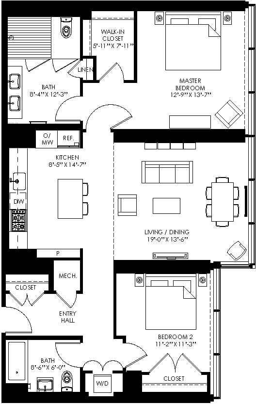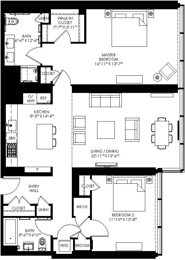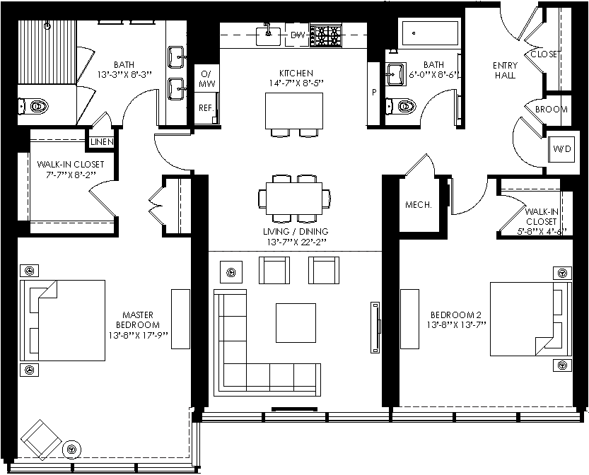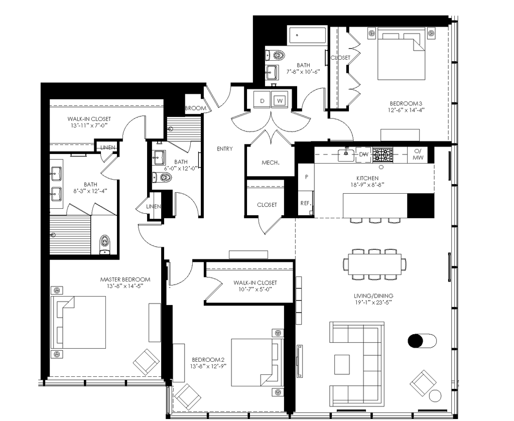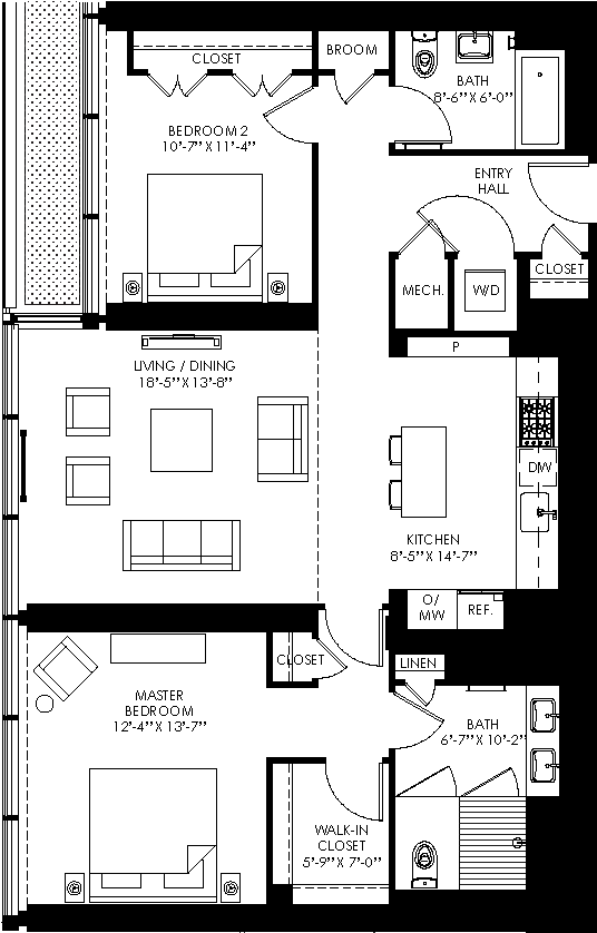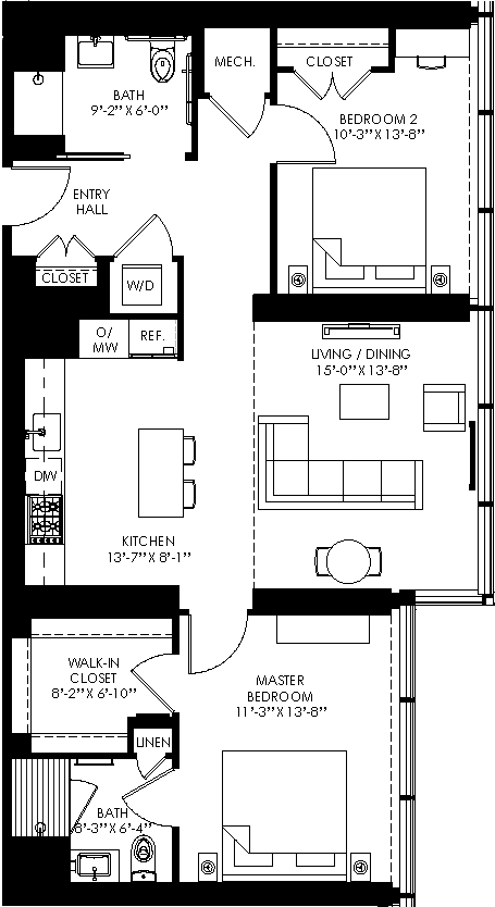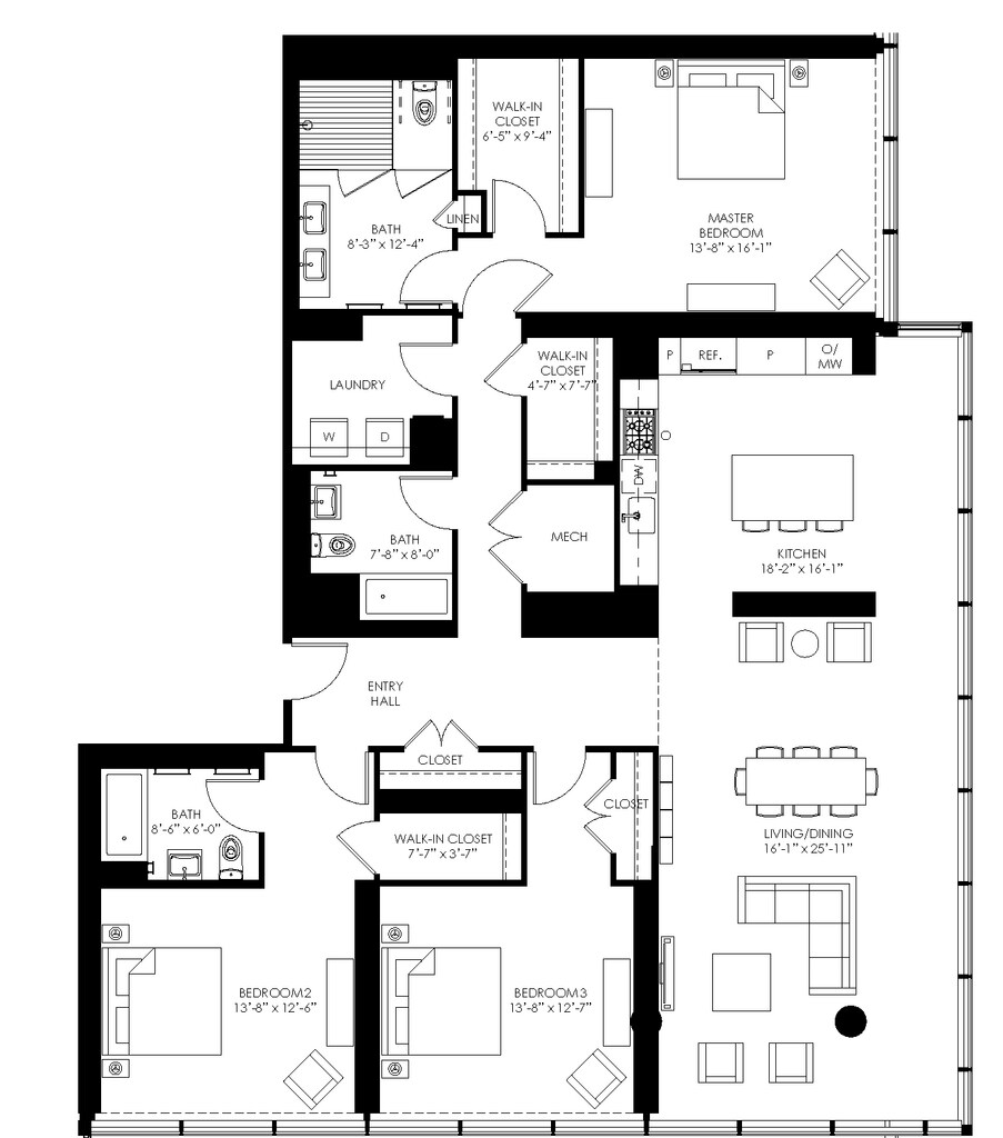 Apartment Model: 1 Bed/1 Bath-a02a1 Bedroom, 1 Bath, 826 sq ftUnavailable![]()