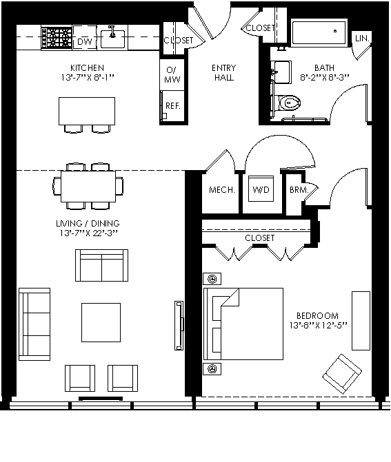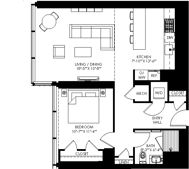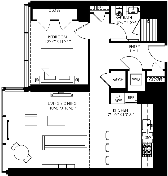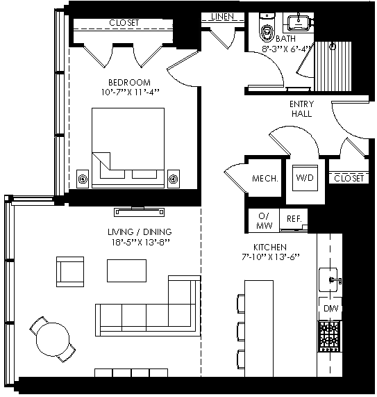 1 Bed, 1 Bath, 826 sq ftModel Gallery