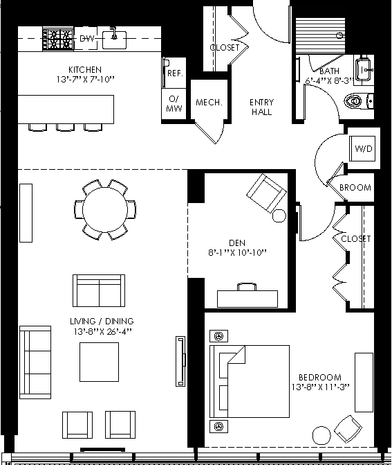 1 Bed/1 Bath Den-ad02 - Floorplan 1 ![]()