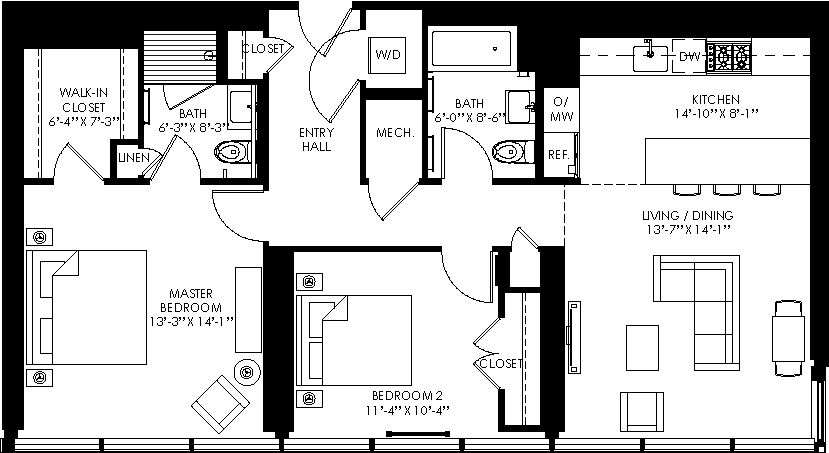 Apartment Model: 1 Bed/1 Bath-a051 Bedroom, 1 Bath, 933 sq ftUnavailable![]()