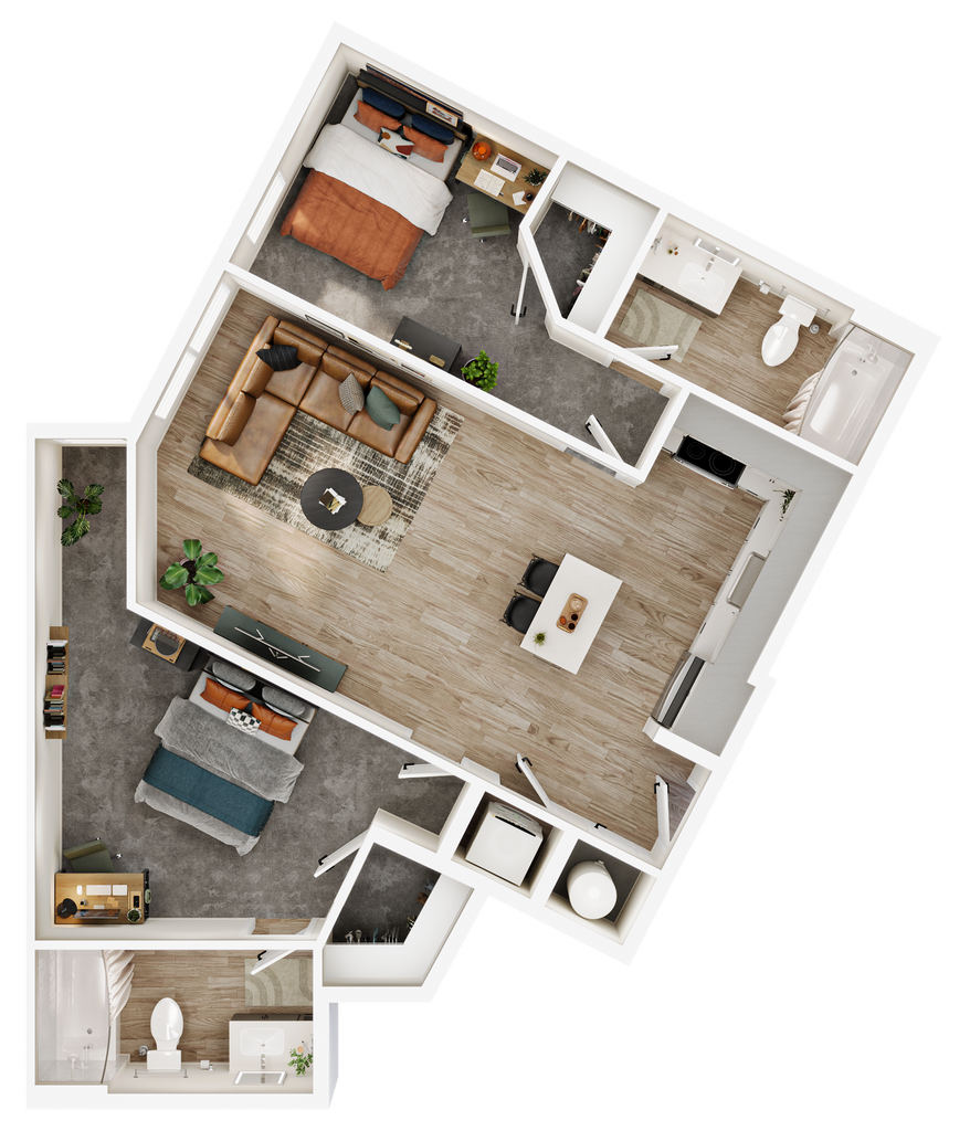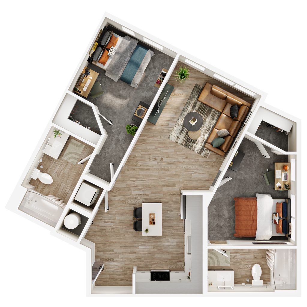 2 Beds, 2 Baths, 834 sq ftAvailable NowModel Gallery