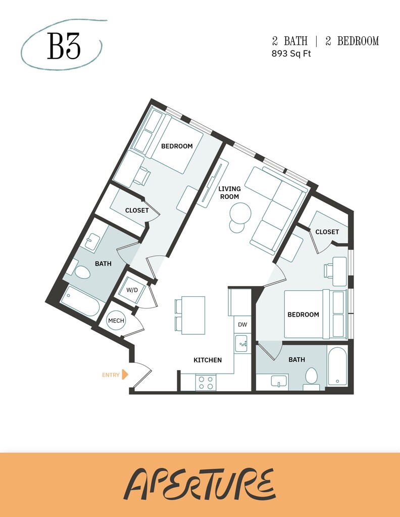 Apartment Model: 2BR/2BA - B3From $1,3692 Bedroom, 2 Bath, 893 sq ftAvailable August 13, 2026![]()