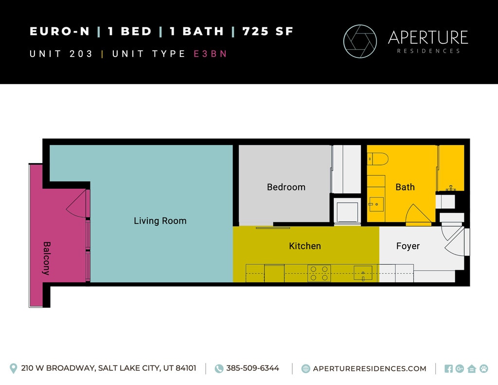 1x1 Euro-N - Floorplan 1 Apartment Unit: 203Apartment Model: 1x1 Euro-N$1,5991 Bedroom, 1 Bath, 725 sq ftAvailable Now1x1 Euro-K