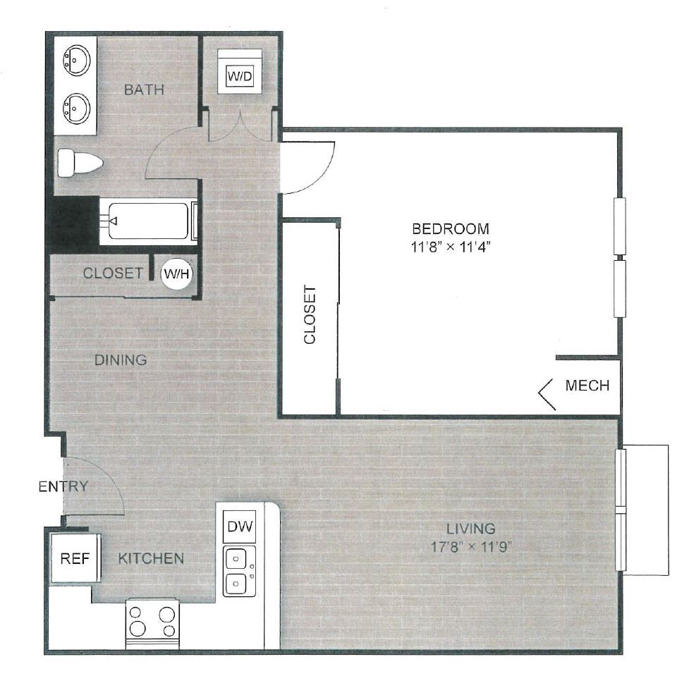 A05 - Floorplan 1 Apartment Unit: 312Apartment Model: A05$1,8891 Bedroom, 1 Bath, 712 sq ftAvailable February 8, 2026Floorplan A03