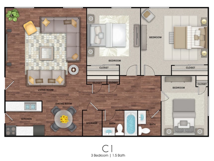 Apartment Model: C1RFrom $1,3853 Bedroom, 1.5 Bath, 1050 sq ftAvailable Now![]()