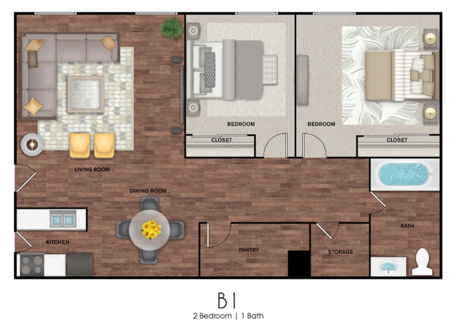 Apartment Model: B1RFrom $1,1502 Bedroom, 1 Bath, 850 sq ftAvailable Now![]()
