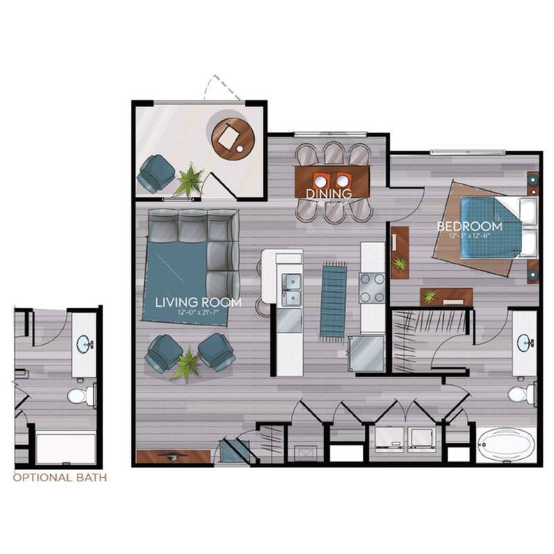 - 1 Bedroom- A1 Alt- From $1,5701 Bed, 1 Bath, 626 sq ftAvailable Now- Model Gallery- Floorplans- Availability Details- Price - Availability Date - Unit - Sq Ft - Deposit - $1,570 - Available Now - 2-02-408 - 626 - $300 - Unit 2-02-408 Amenities and Features- Features- Air Conditioning
