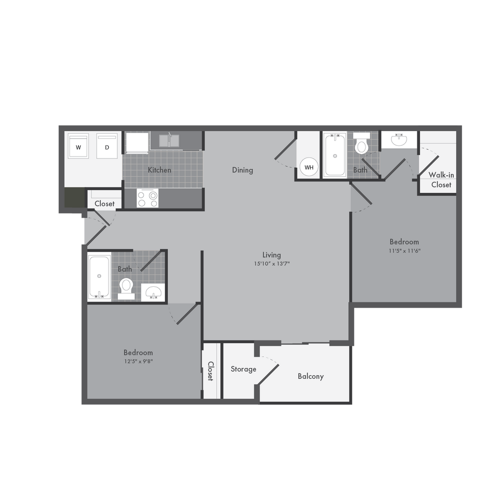 2 Beds, 2 Baths, 918-1004 sq ftAvailable NowLargest 2 BedroomThis is the largest 2 Bedroom at this PropertyModel Gallery