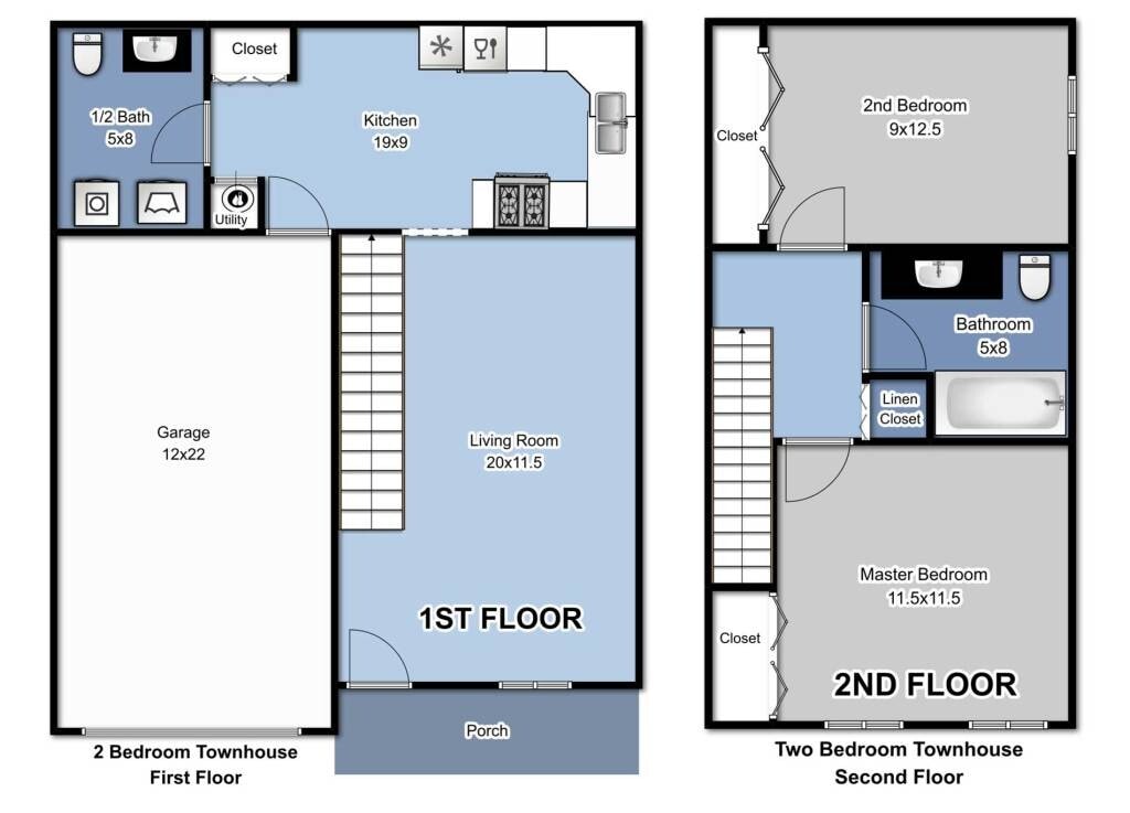 2 Bedroom Townhouse - Floorplan 1 Apartment Unit: Soonest AvailableApartment Model: 2 Bedroom Townhouse$1,3152 Bedroom, 1 Bath, 1100 sq ftAvailable Now3 Bedrooms