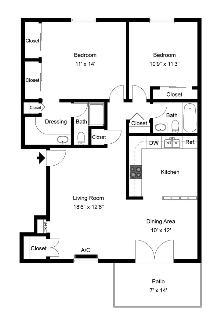 AC-2x1.5TH(1685) - Floorplan 13 Apartment Unit: 11354Apartment Model: AC-2x1.5TH(1685)$2,2502 Bedroom, 1.5 Bath, 1685 sq ftAvailable December 17, 2025AC-2x2(1007)