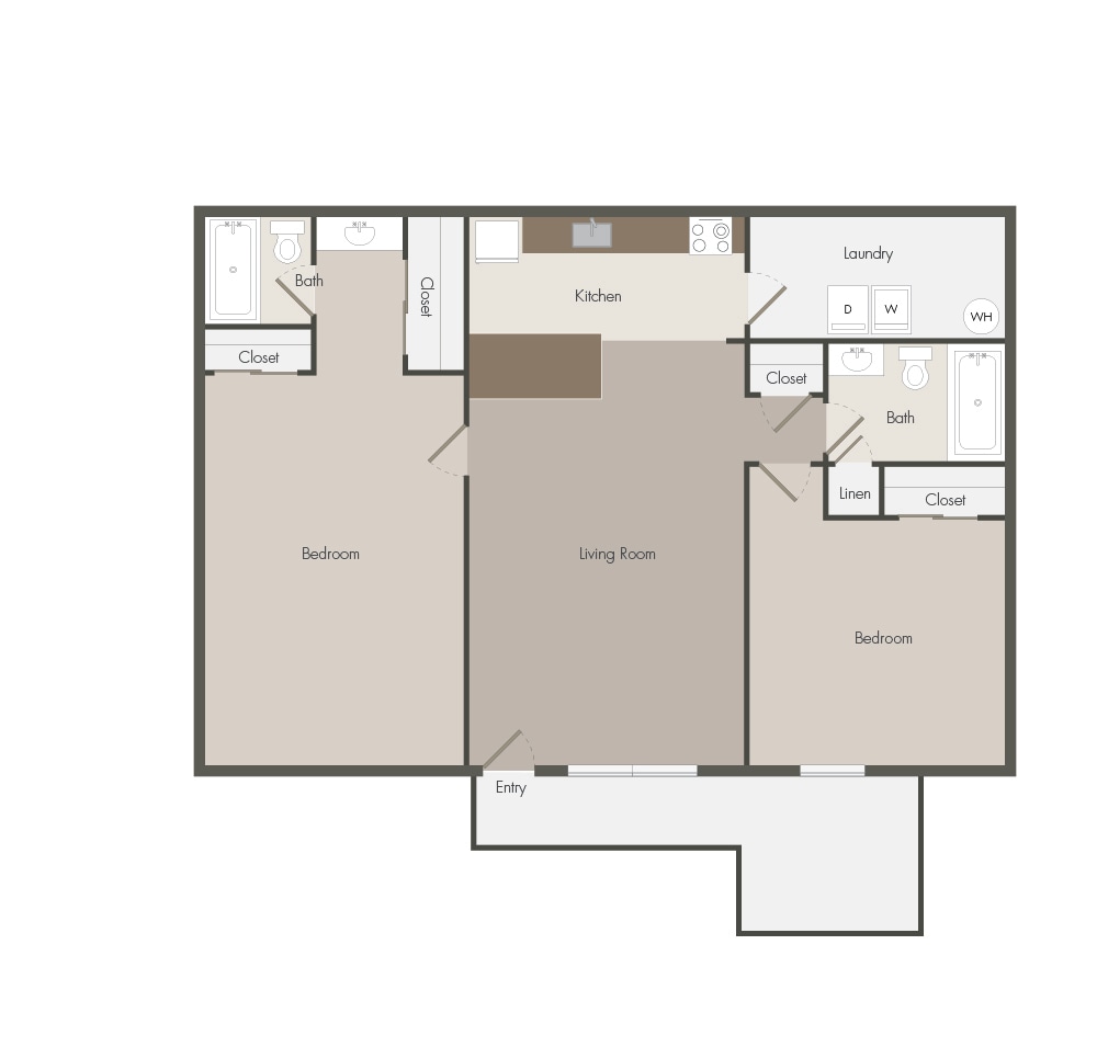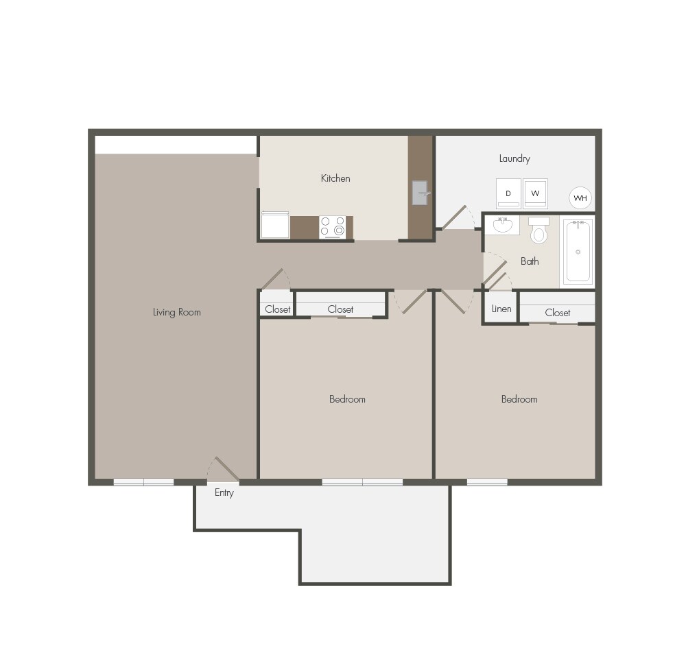 2 Beds, 1 Bath, 864 sq ftAvailable NowModel Gallery