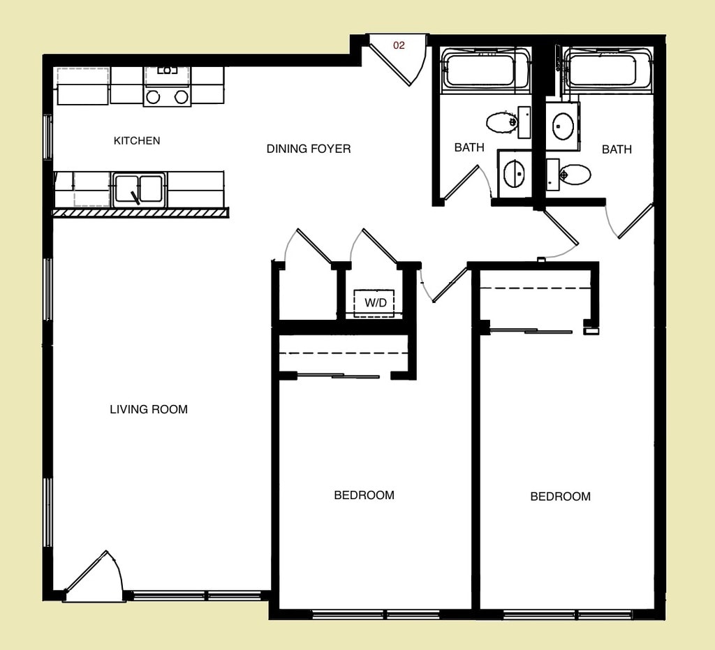 2 Beds, 2 Baths, 1150-1200 sq ftModel Gallery