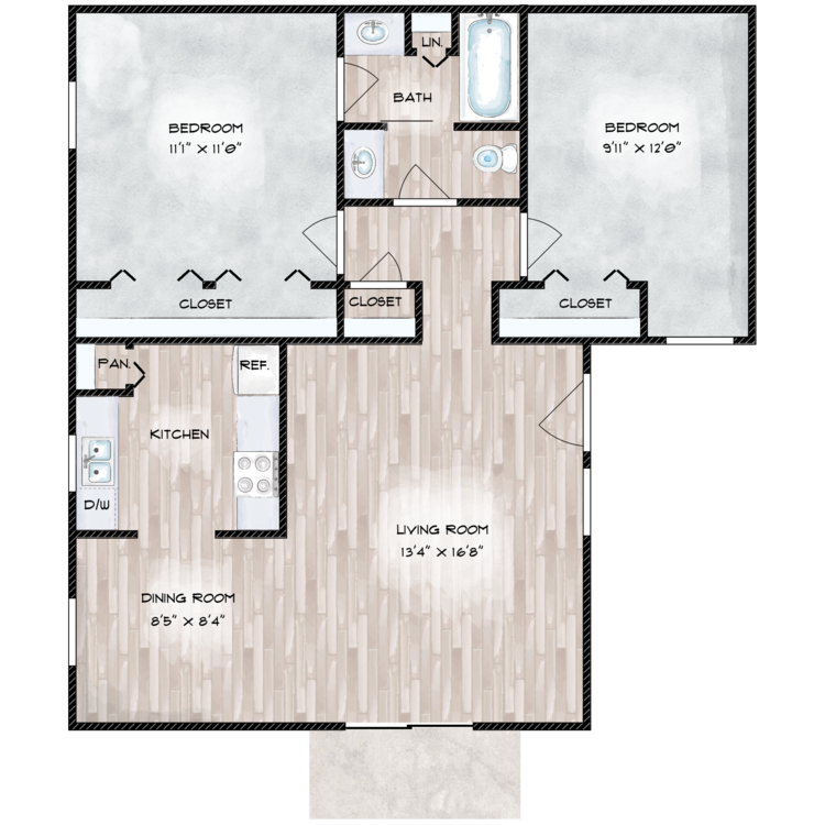 2 Beds, 1 Bath, 863 sq ftAvailable NowModel Gallery