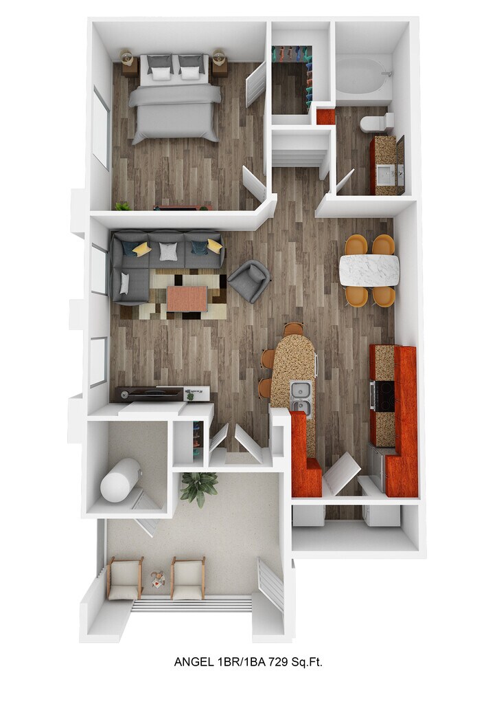 Apartment Model: Angel1 Bedroom, 2 Bath, 729 sq ftUnavailableAngel - Floorplan 1 2 Bedrooms